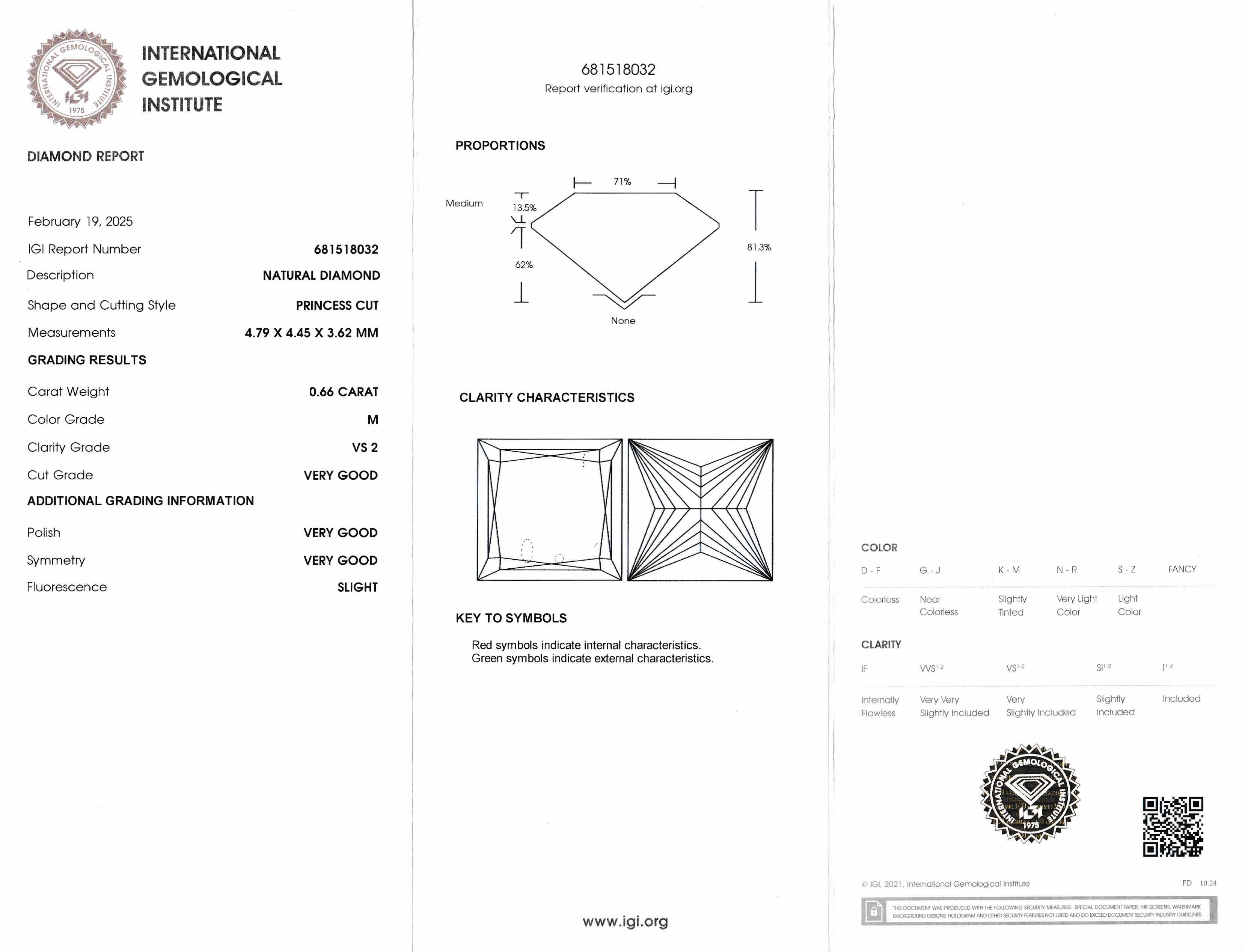 Loser Princess Cut Diamant, 0.66 ct Getönt (M)/vs2, eingeschweißt, IGI-Expertise