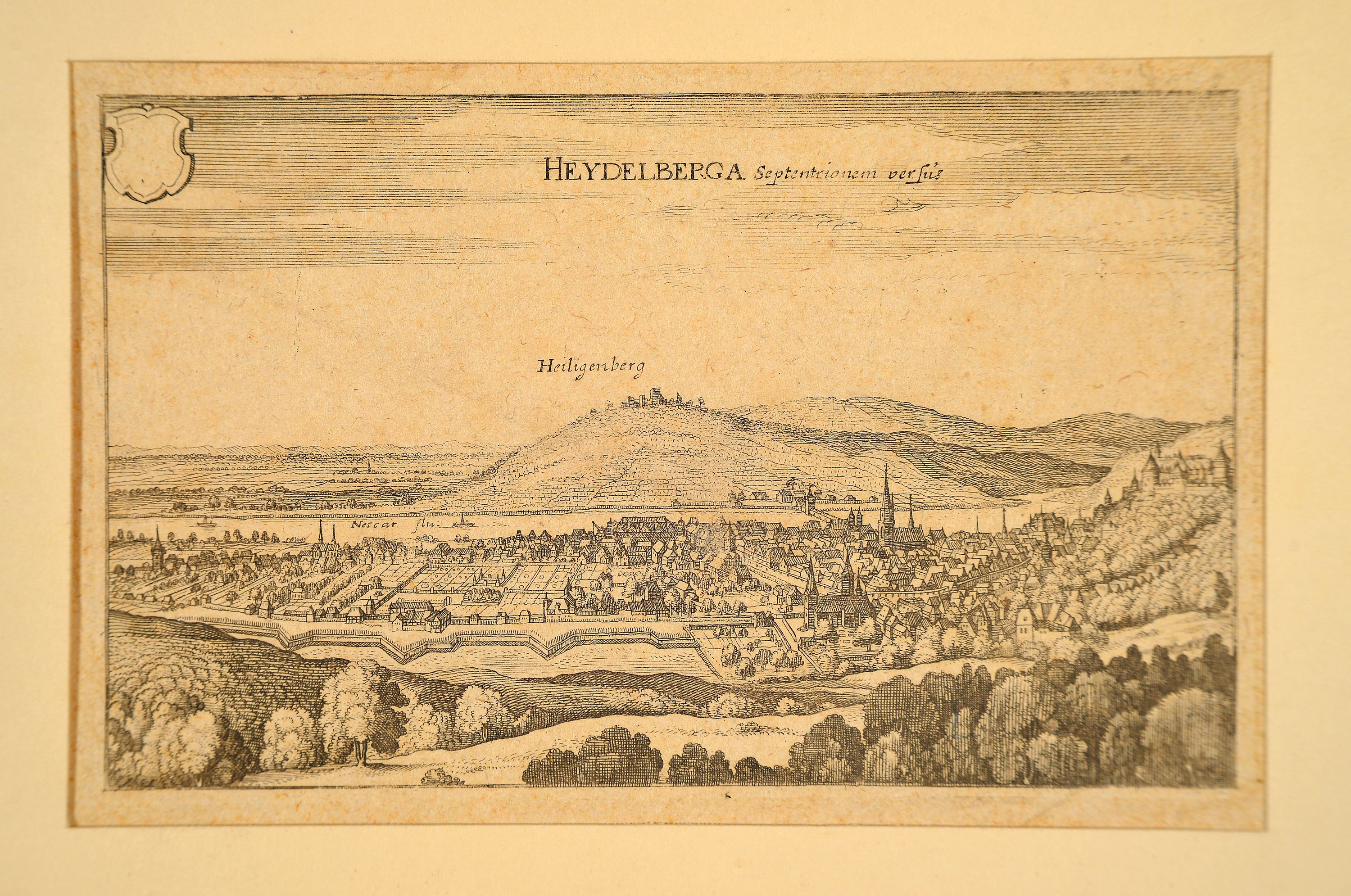 Septentrionem versus", Ansicht von Heidelberg mit Blick auf den Heiligenberg, gesehen