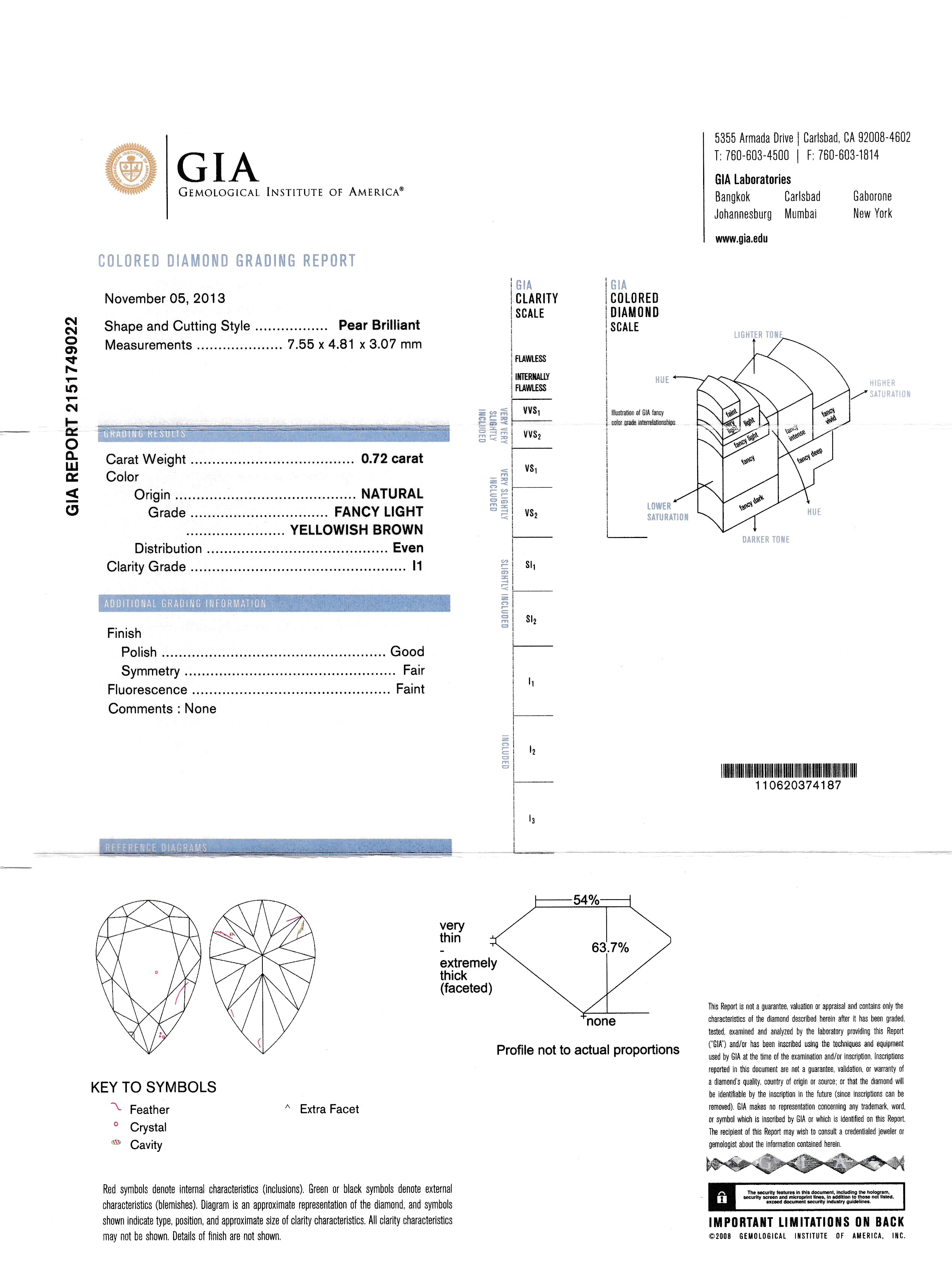 Loser Diamant-Tropfen 0.72 ct Fancy Light Yellowish Brown/p1, verschweißt, GIA-Expertise