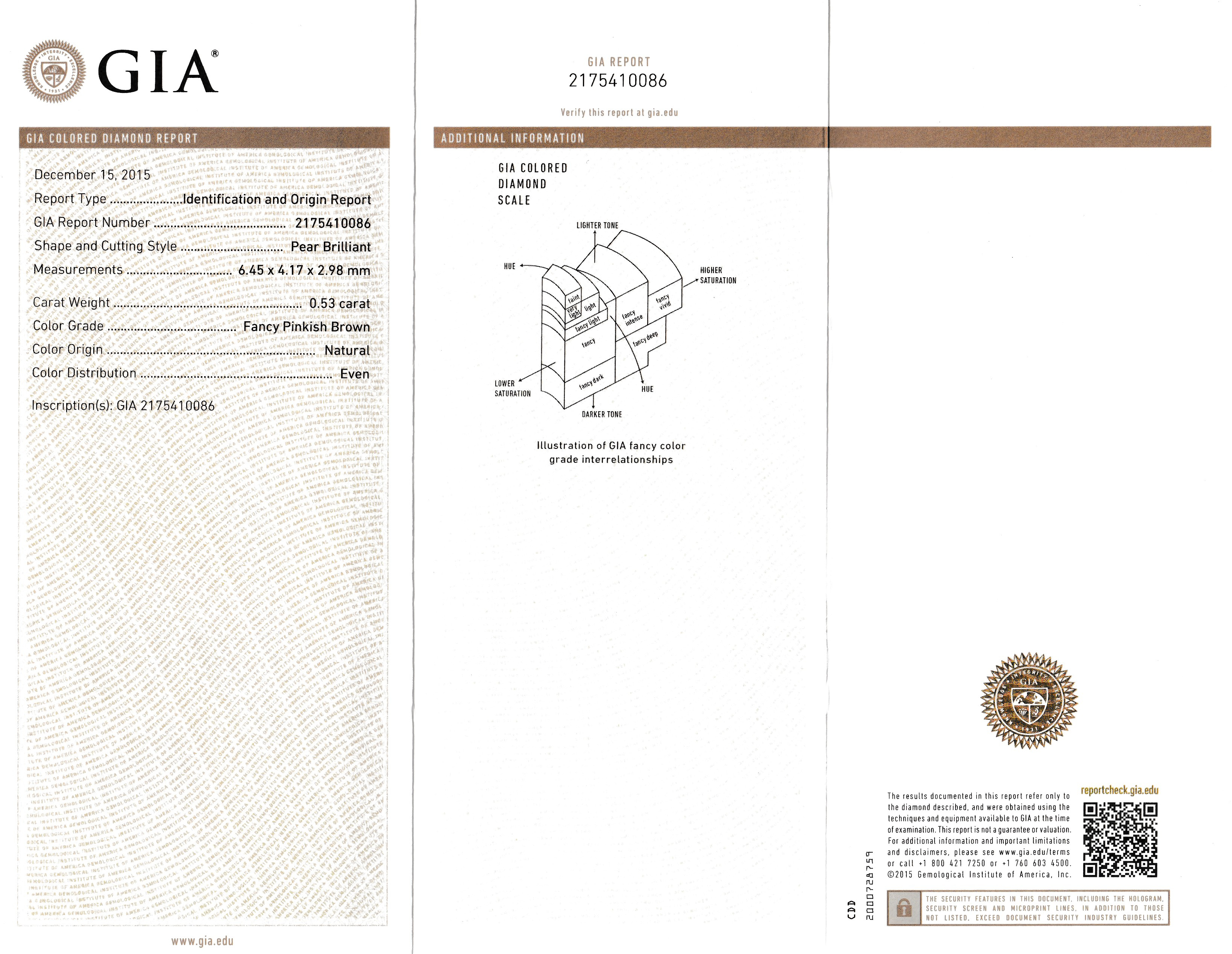 Loser Diamant-Tropfen 0.53 ct Natural Fancy Pinkish Brown, GIA Zertifikat