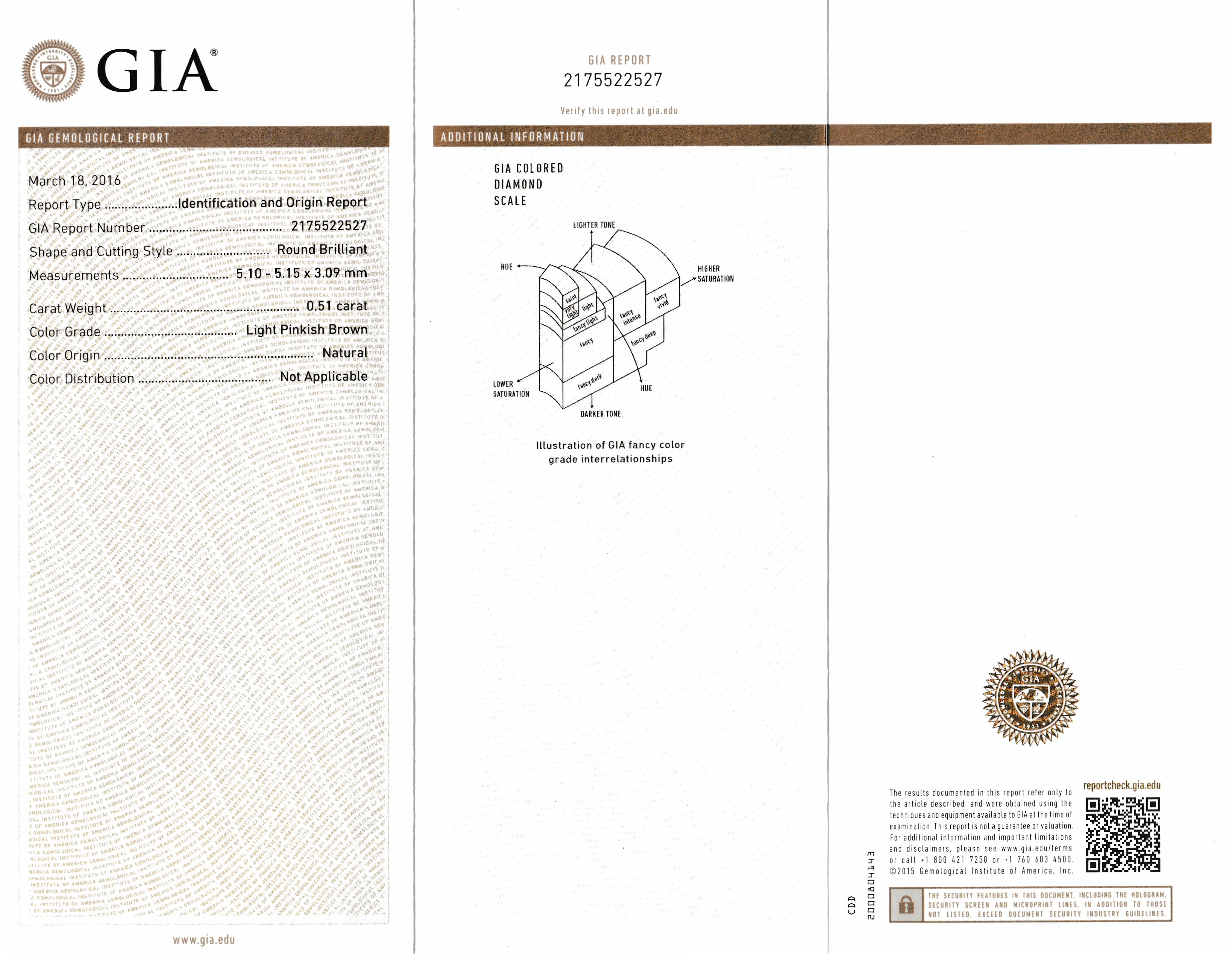 Loser Brillant 0.51 ct Natural Light Pinkish Brown, GIA Zertifikat