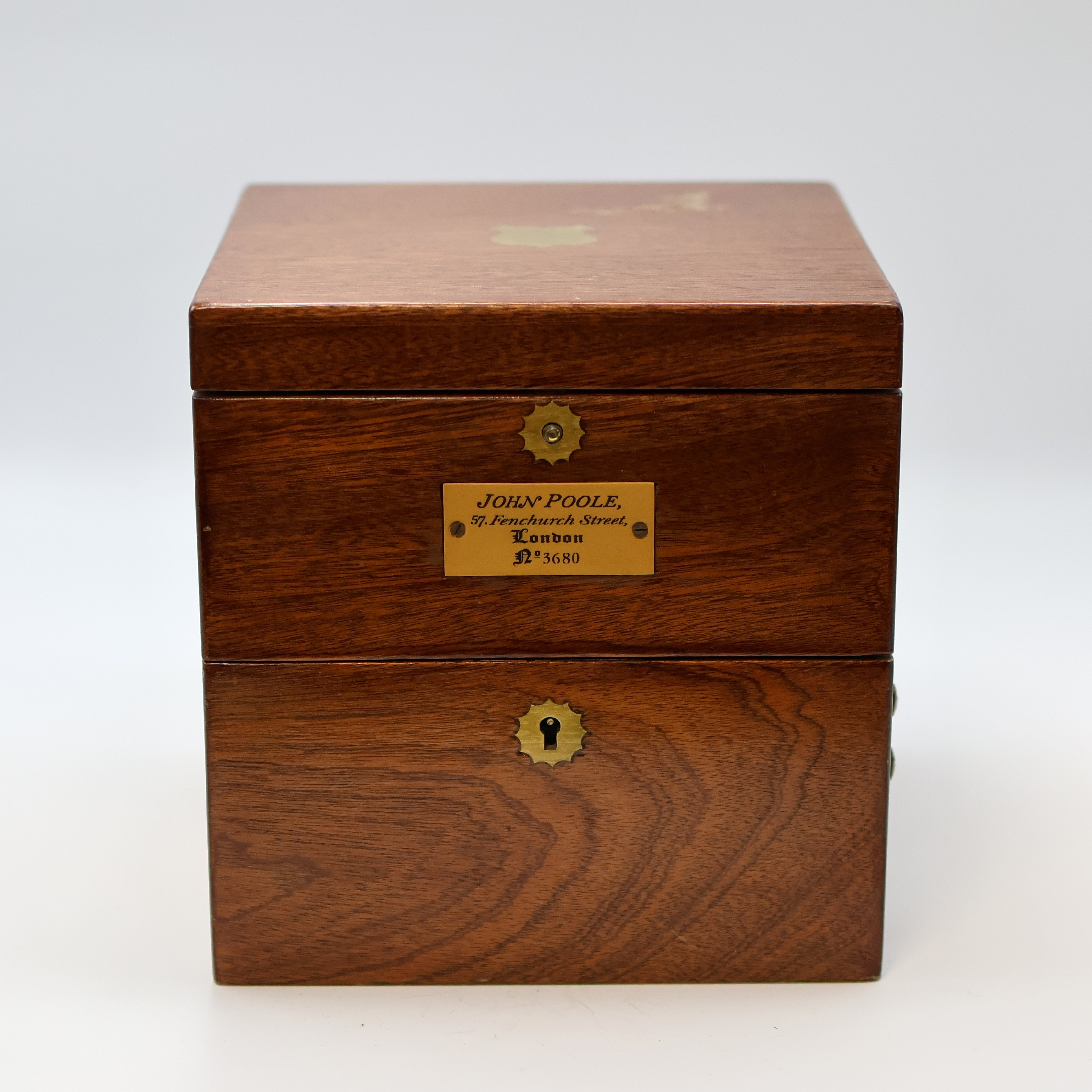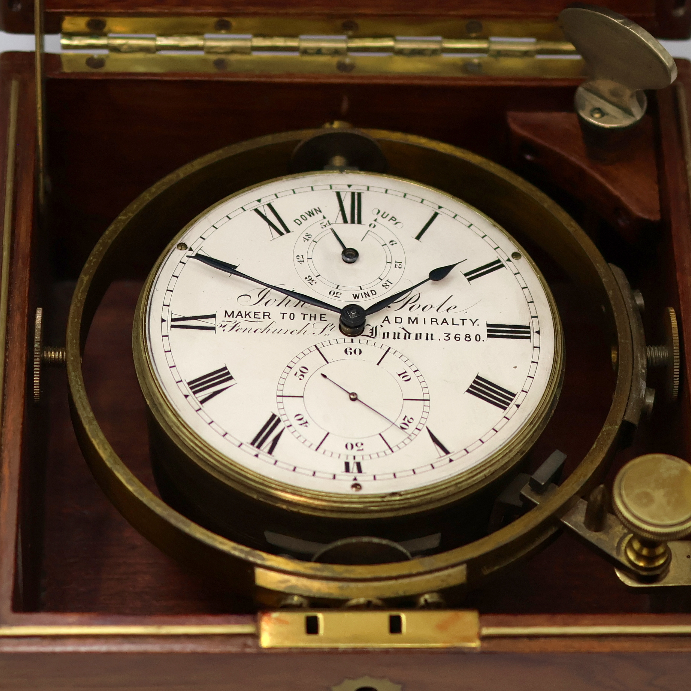 JOHN POOLE Marinechronometer im späteren Holzkasten, England um 1880, 3-tlg. Holzkasten