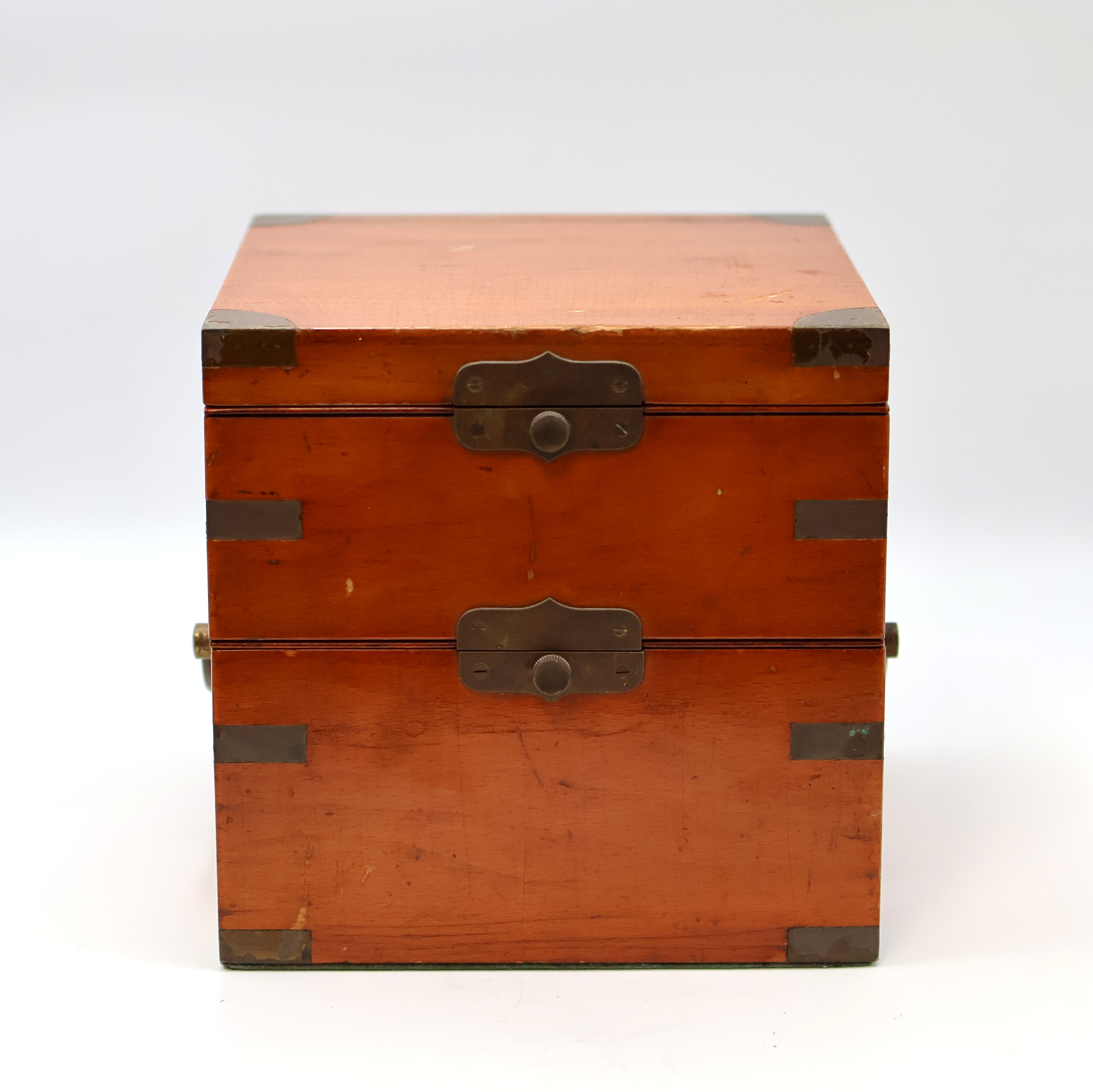 um 1952, 3-tlg. Holzkasten, seitl. Tragegriffe, silb. Zifferbl. berieb./pat., 56-Std.