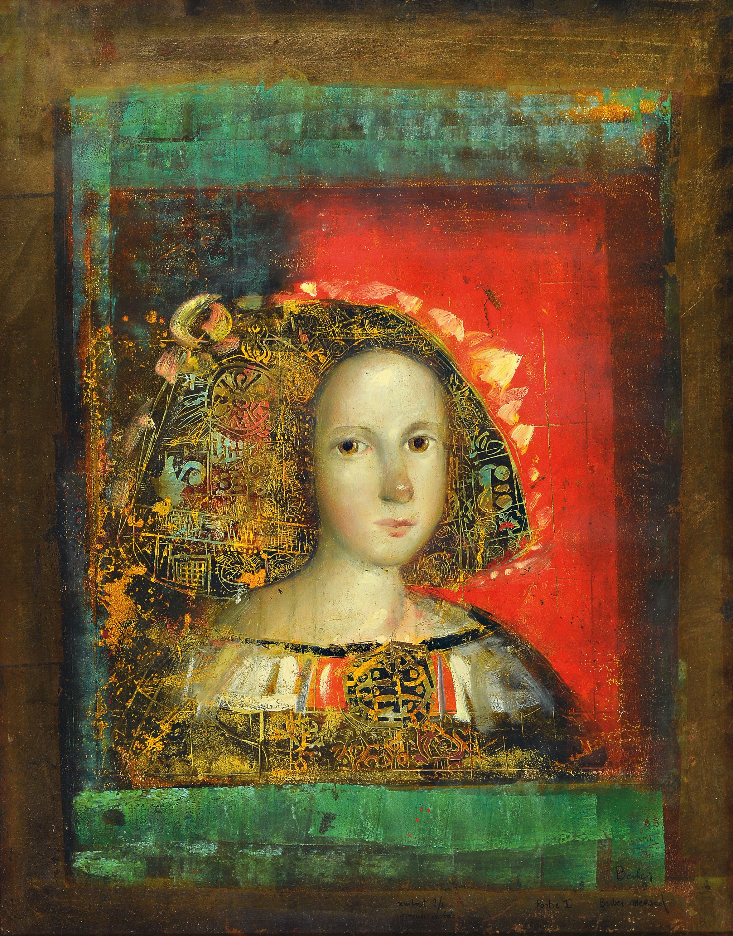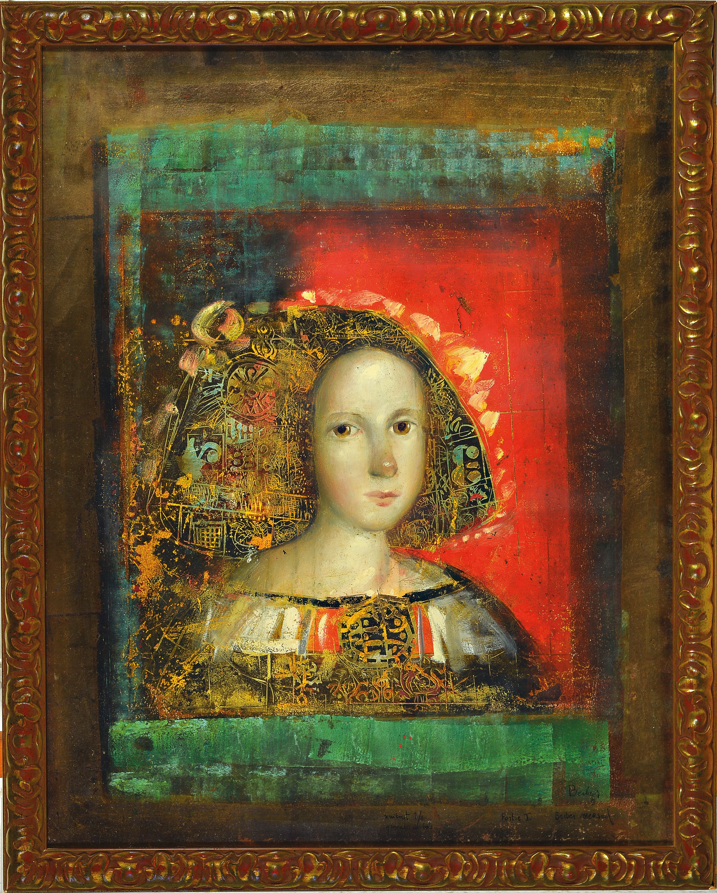 Mersad Berber, 1940-2012 Zagreb, Mischtechnik mit Blattgold auf Papier, Unikat,"Portre