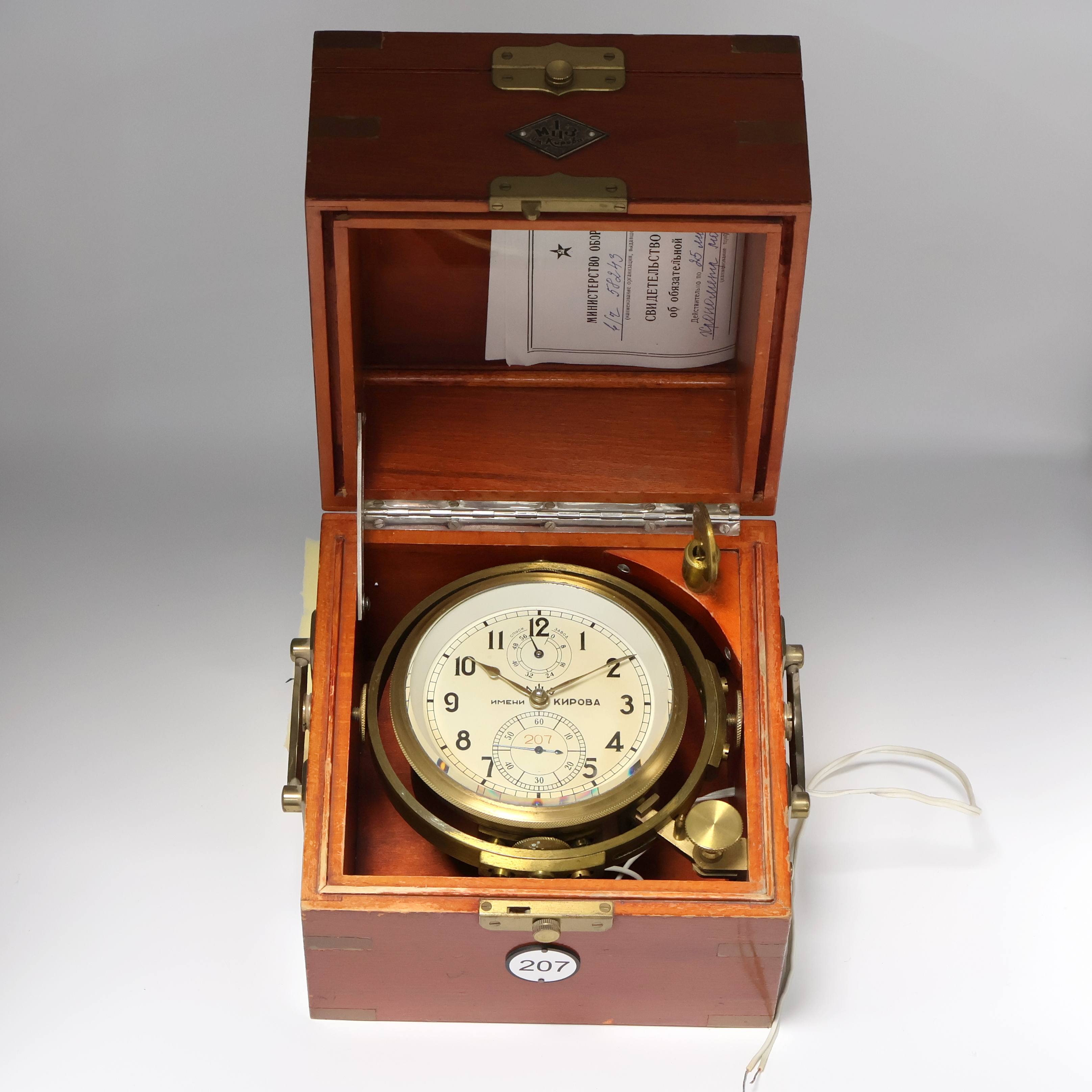 1. Moskauer Uhrenfabrik Nummer 207 frühes Marinechronometer, UDSSR um 1952, 3-tlg.