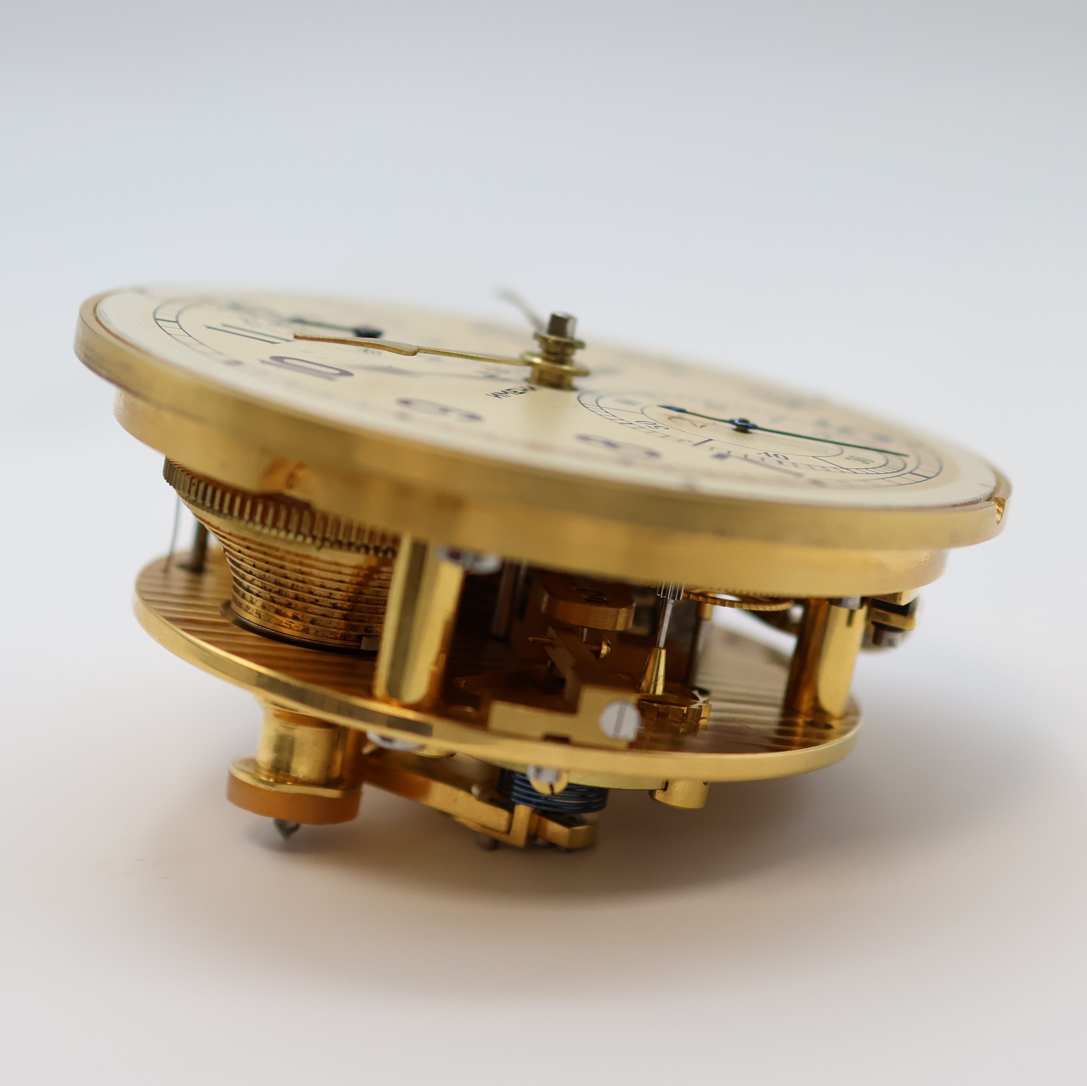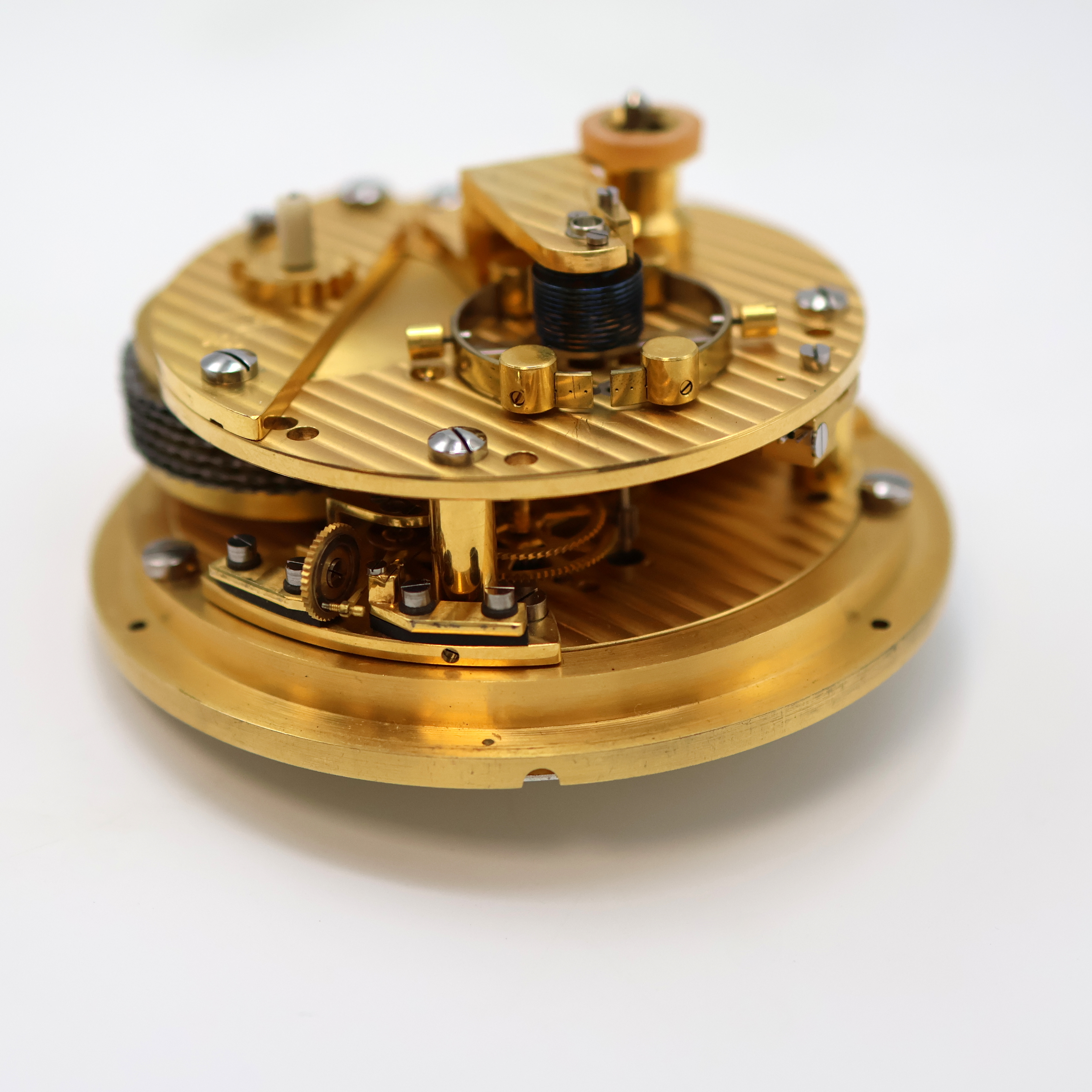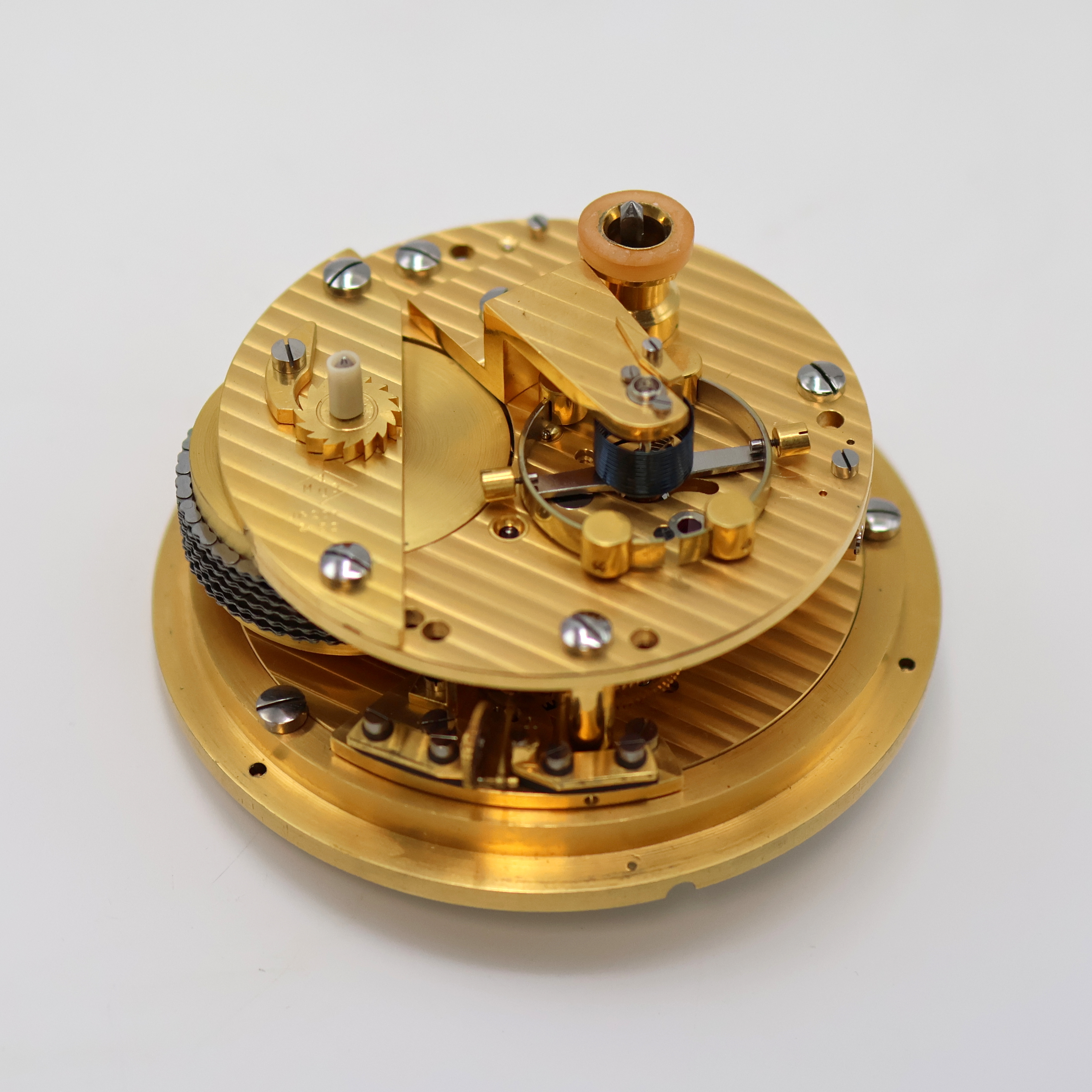 Sek. b. 6, orig. Zeiger, verg. Werk m. Genfer Streifen, Kette/Schnecke, Komp.-Unruh
