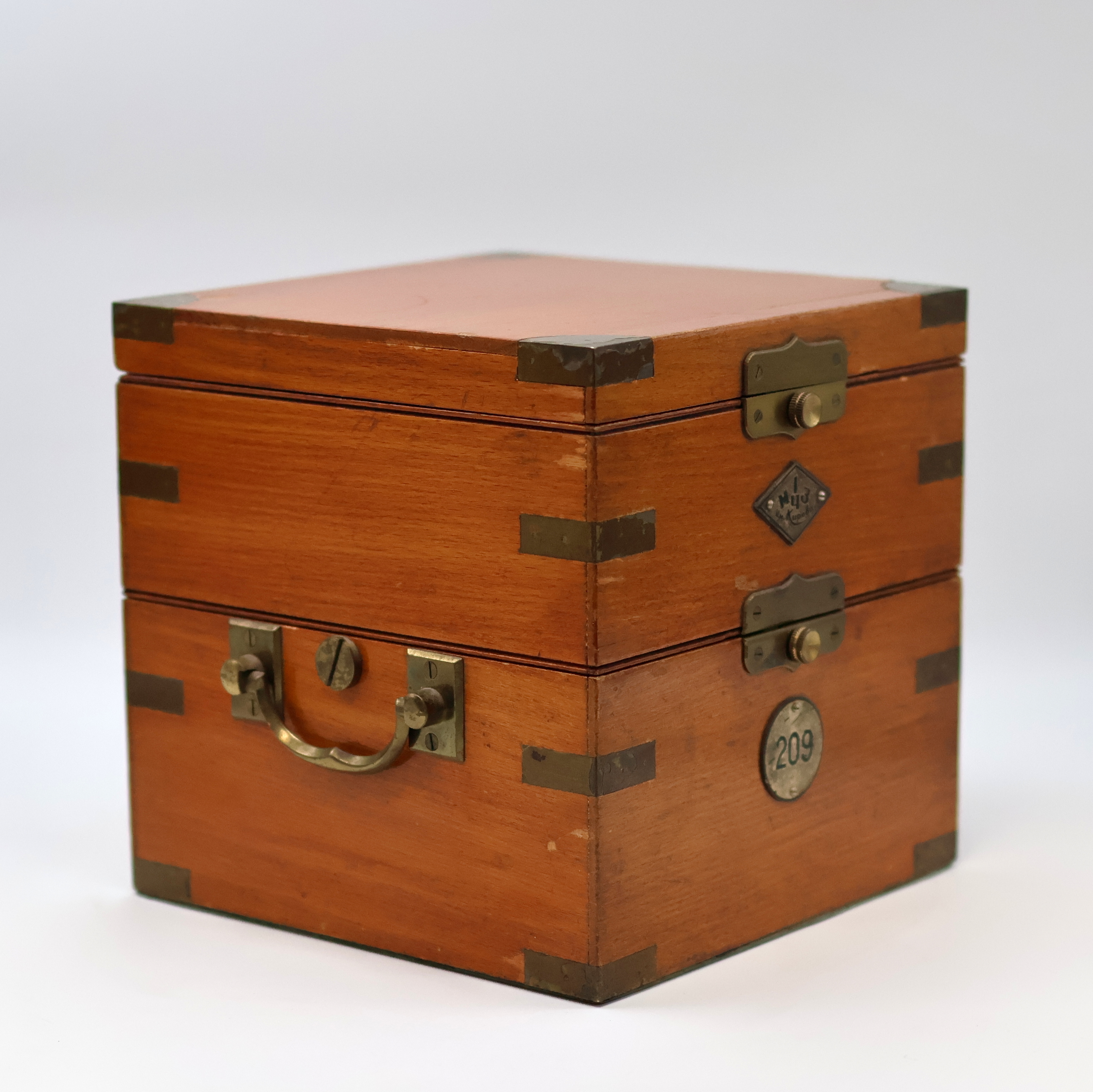 Holzkasten, seitl. Tragegriffe, kardanisch aufgehängtes Messinggeh., Lünette verschr.,