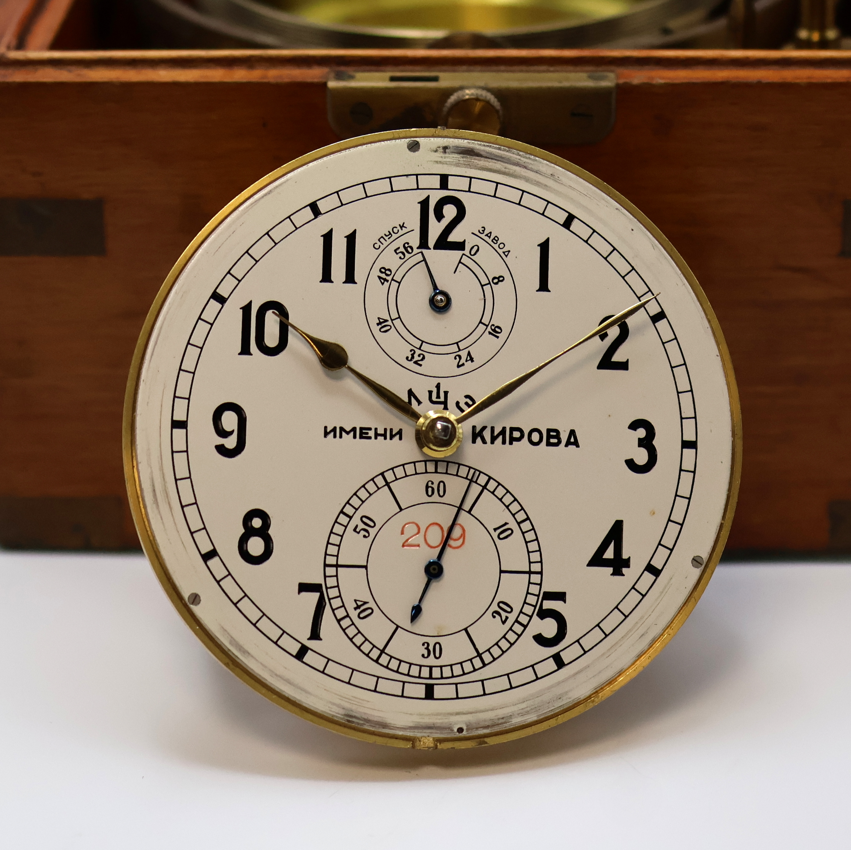 1. Moskauer Uhrenfabrik Nummer 209 frühes Marinechronometer, UDSSR um 1952, 3-tlg.