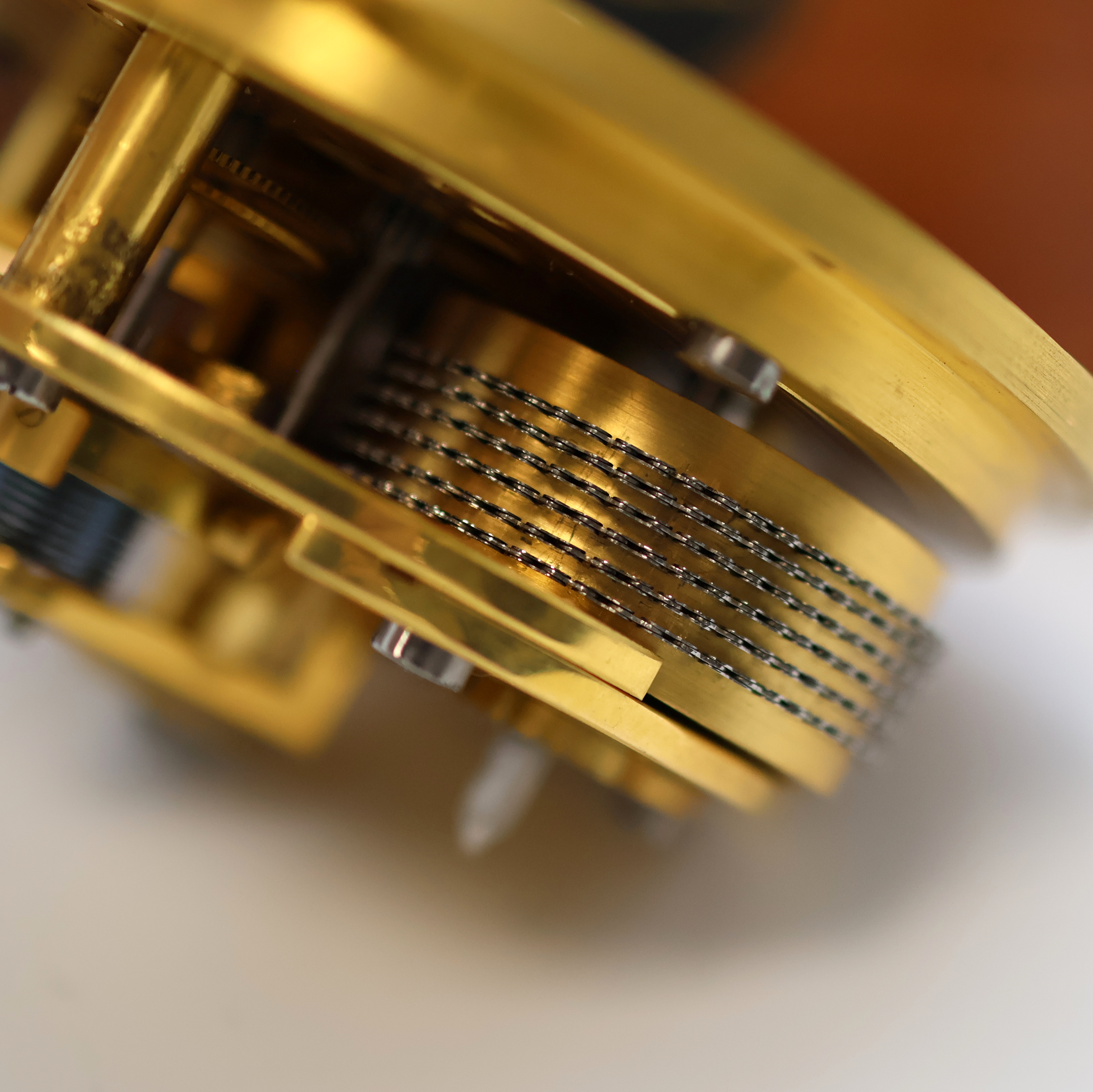 gold plated movement with fausses cotes decoration, chain/fusee, compensation-balance