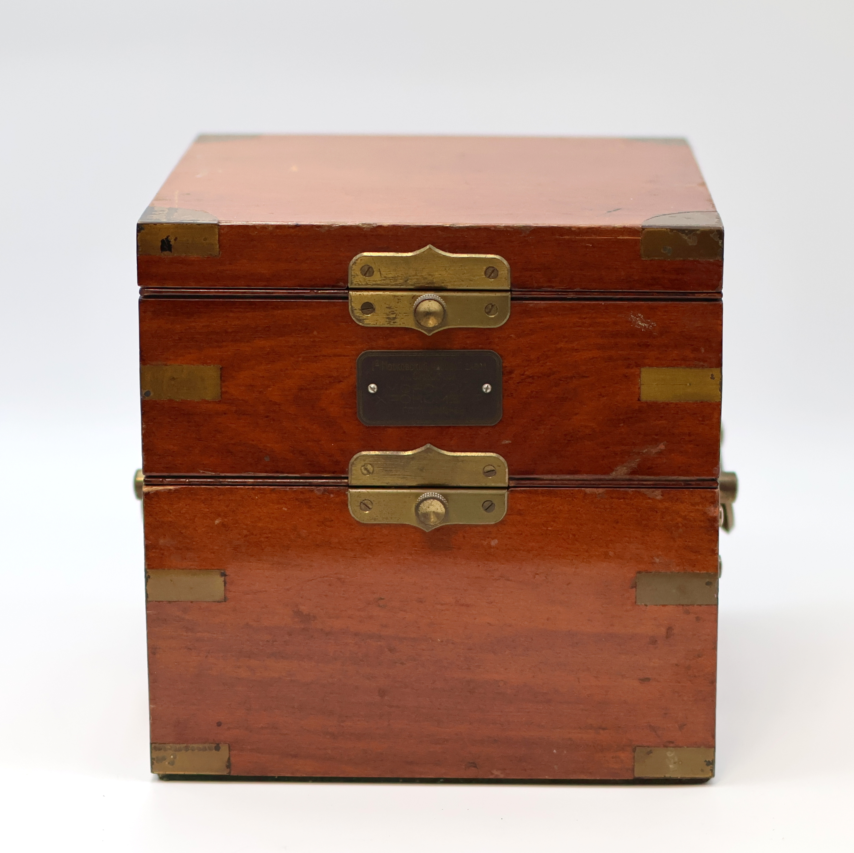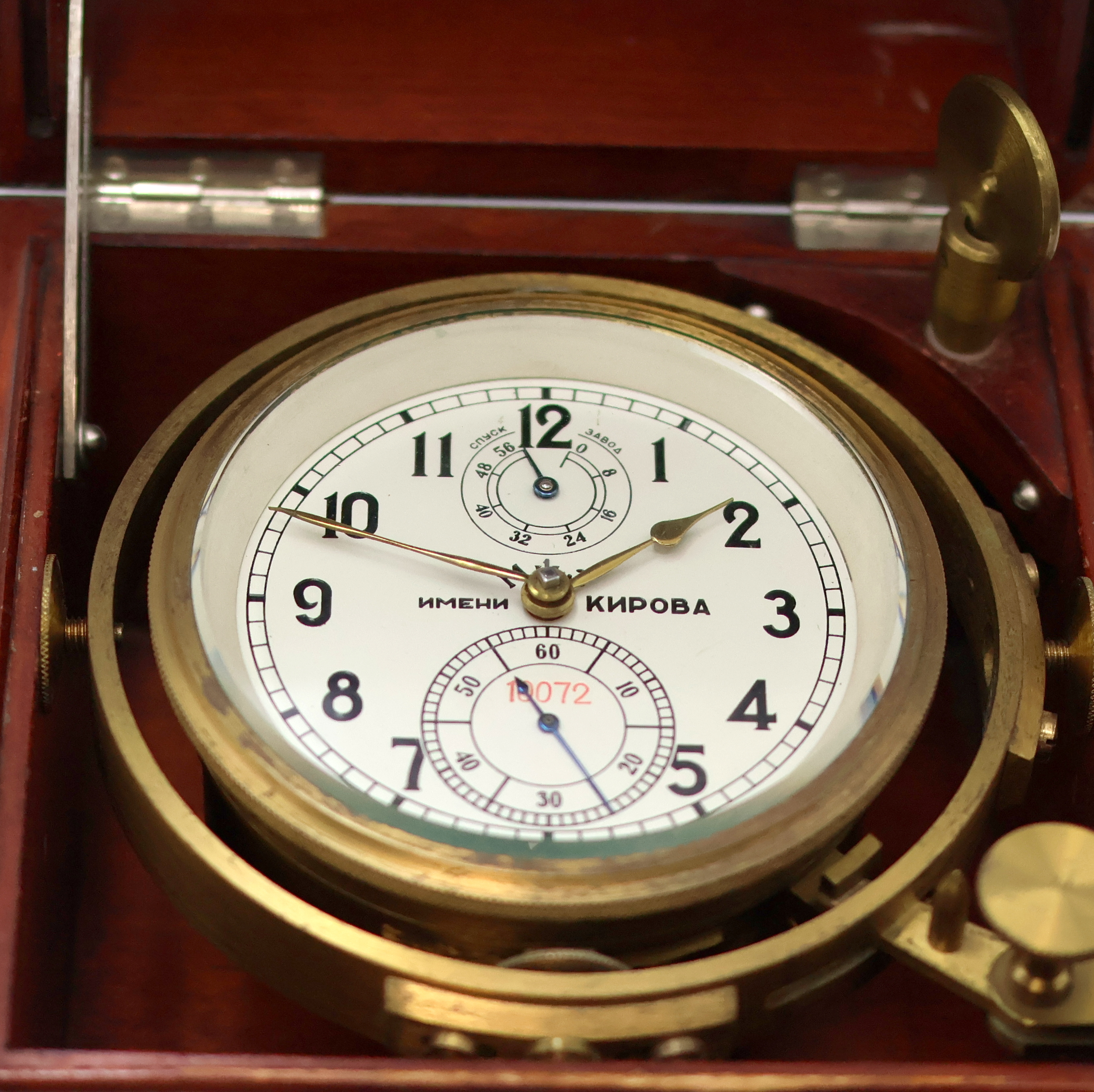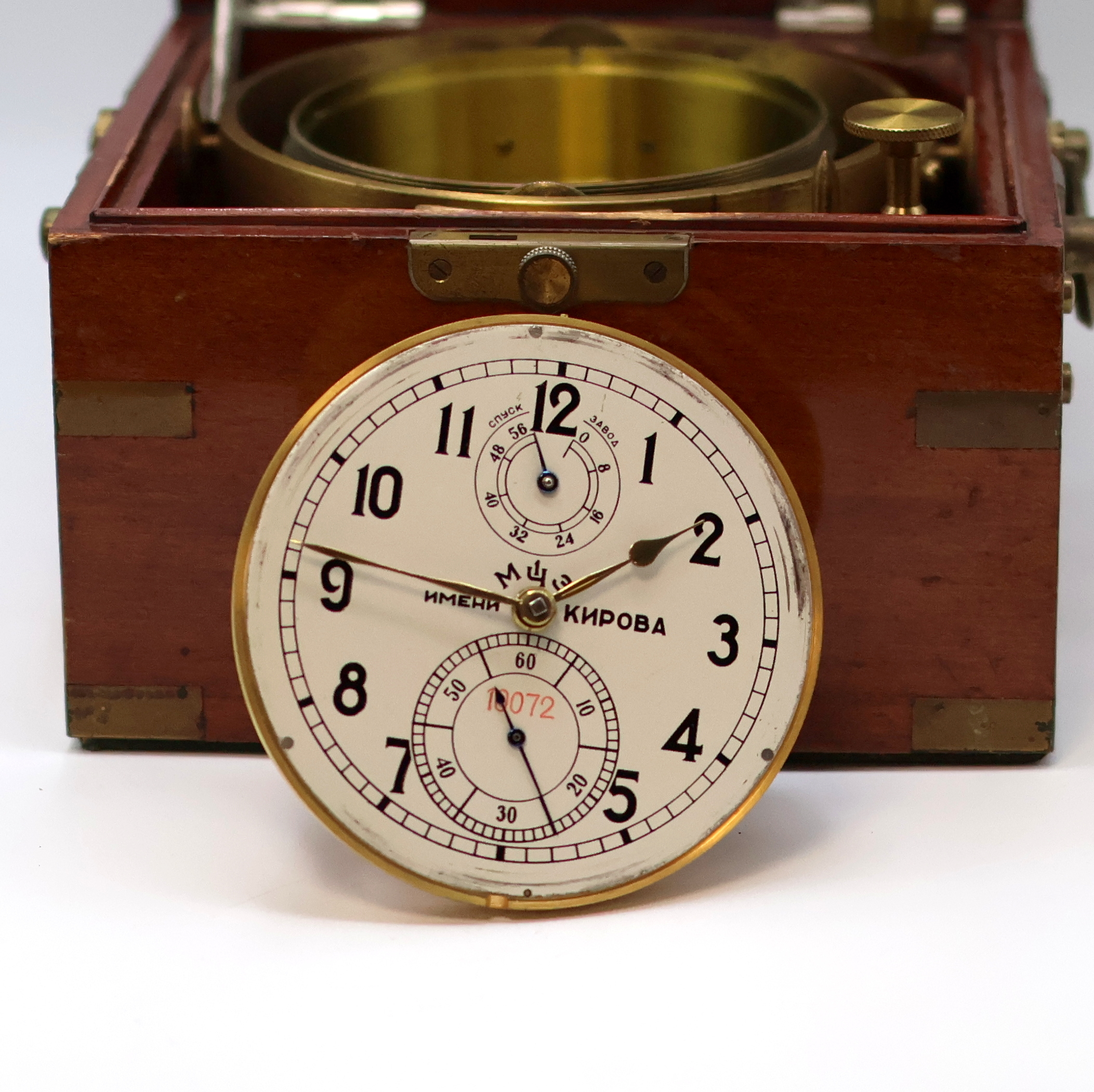 1. Moskauer Uhrenfabrik Marinechronometer, UDSSR um 1965, 3-tlg. Holzkasten, seitl.