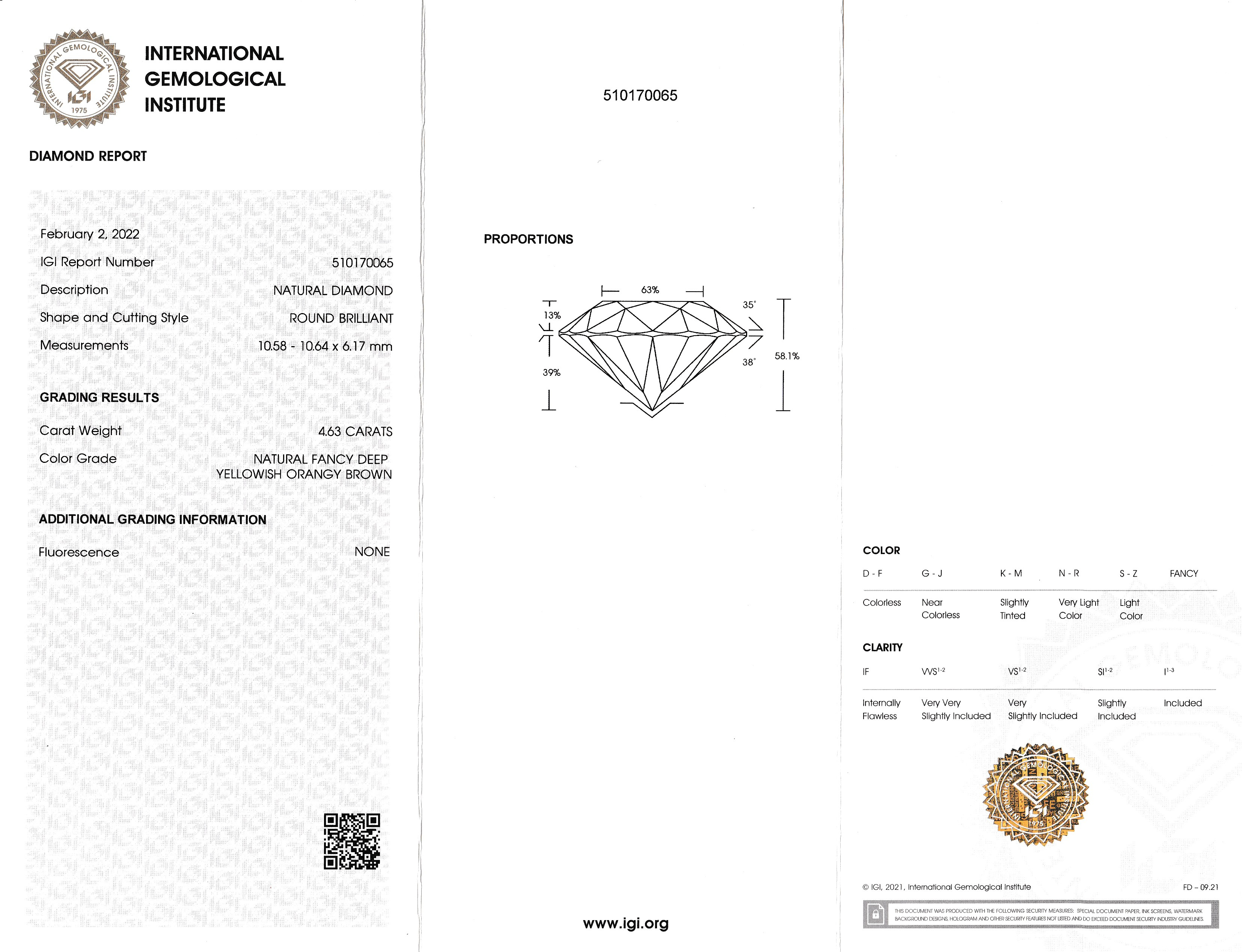 Loser Brillant 4.63 ct Natural Fancy Deep Yellowish Orangy Brown, verschweißt, IGI Zertifikat