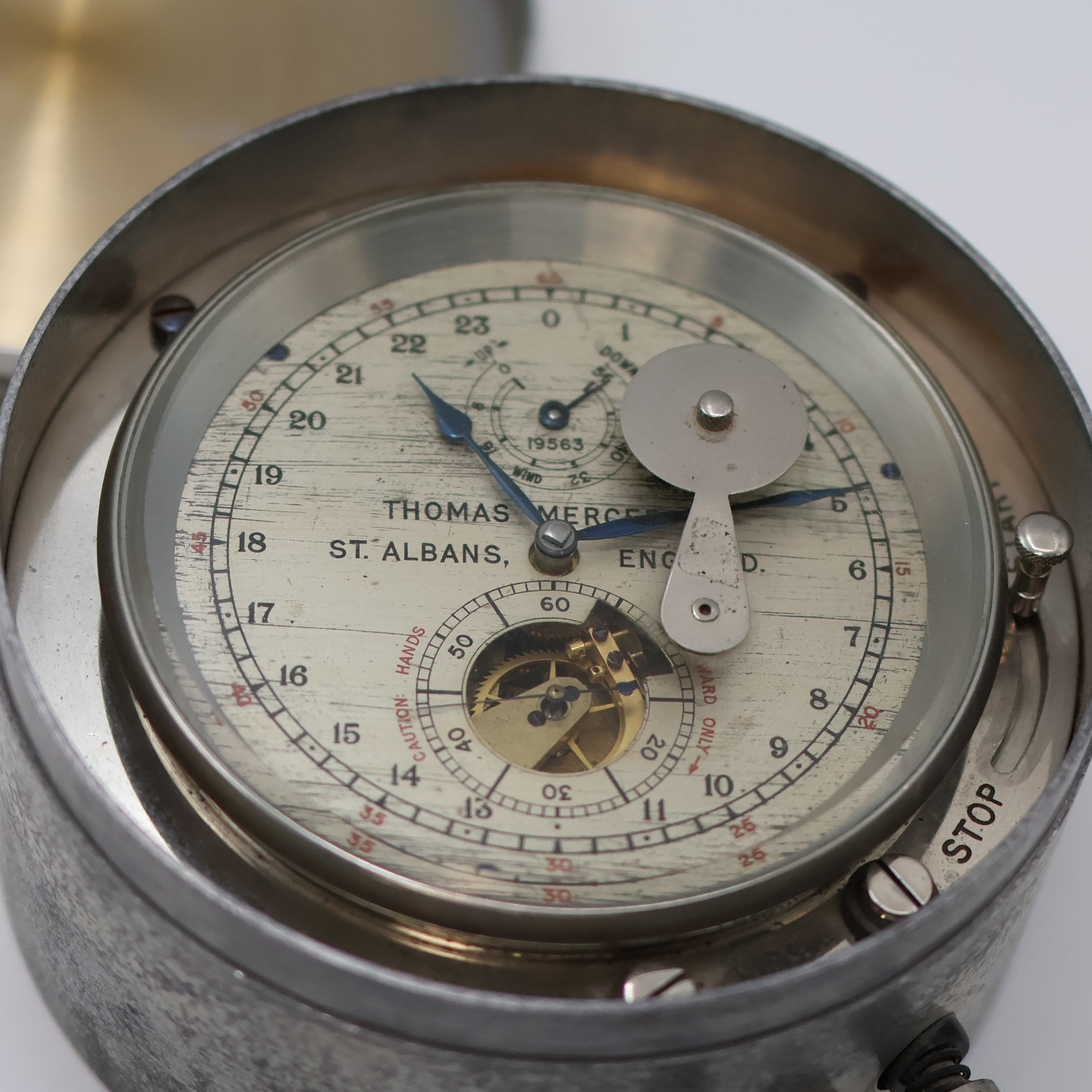 THOMAS MERCER Vermessungschronometer in Aluminium Gehäuse, England um 1945, 2-tlg.
