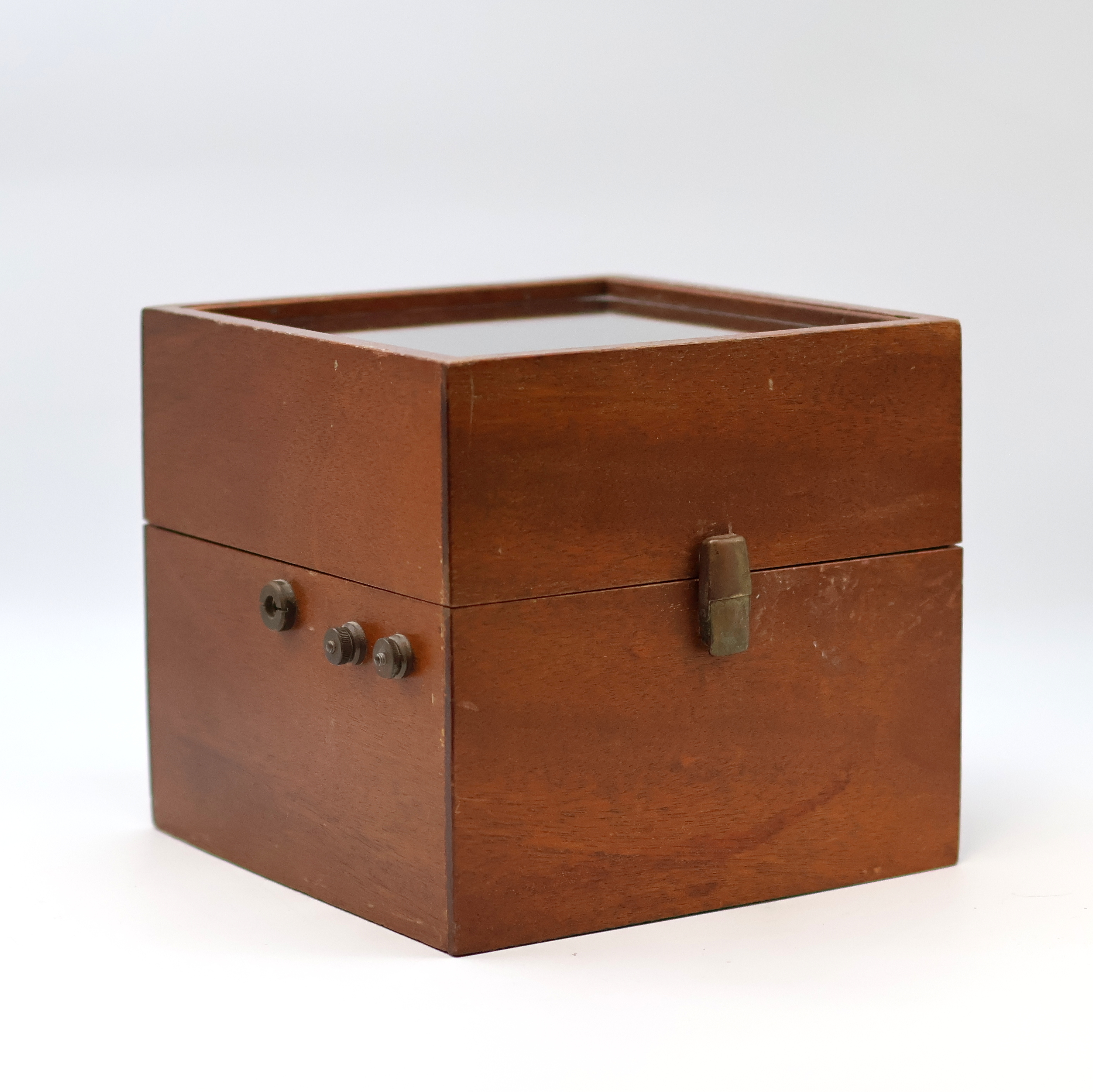 um 1970, vergl. 2-tlg. Holzkasten, seitl. Anschluss f. Sek.-Kontakt, kardanisch aufgehängtes