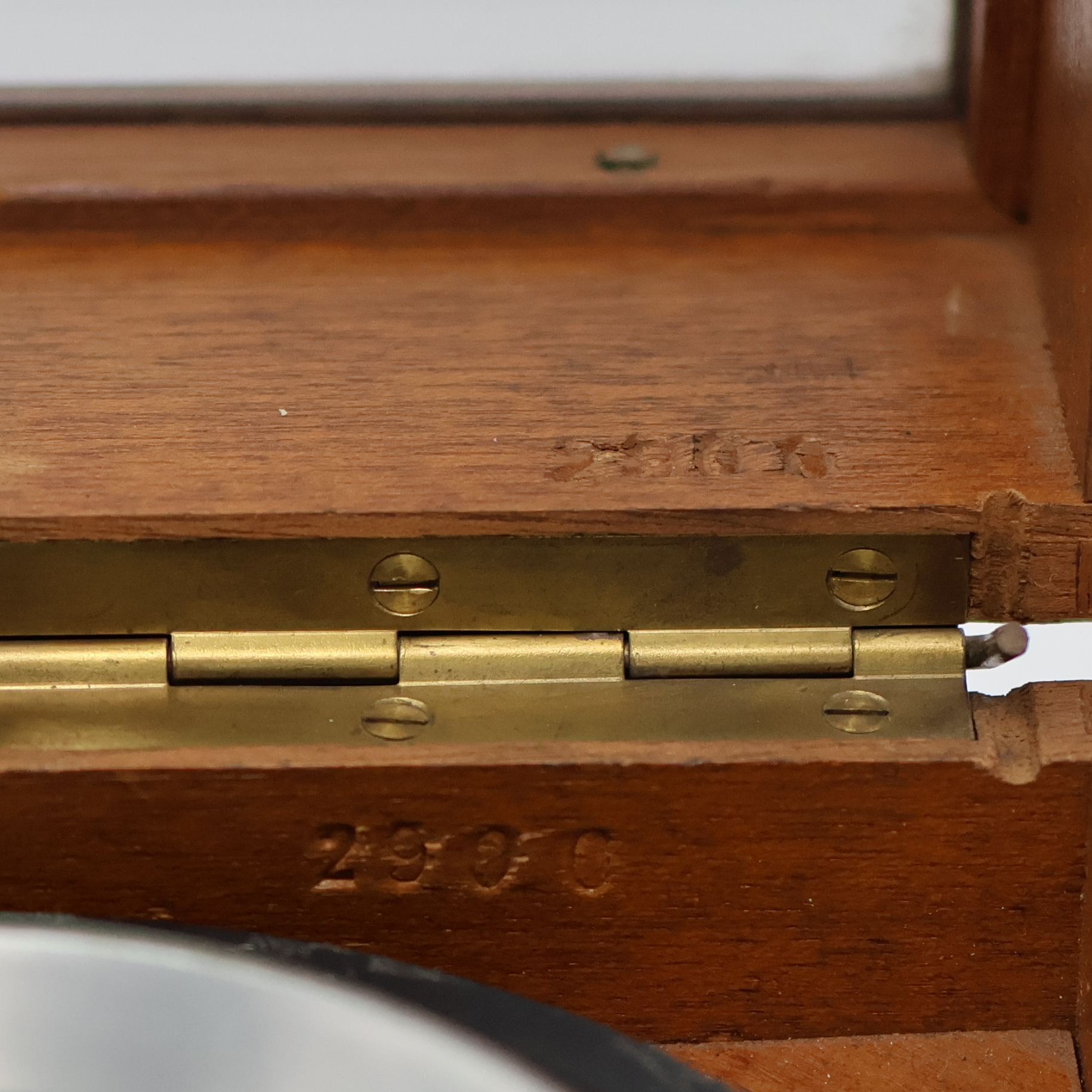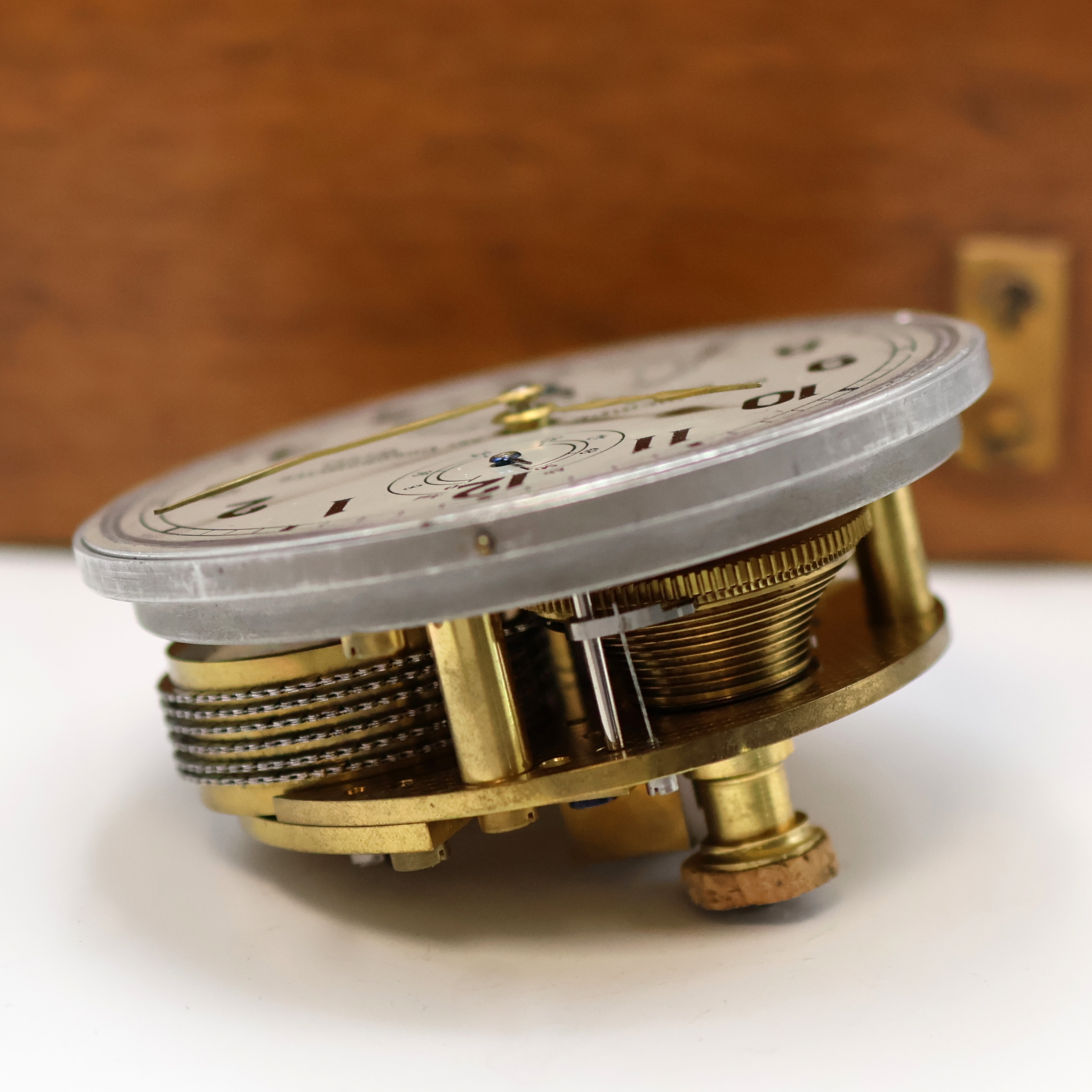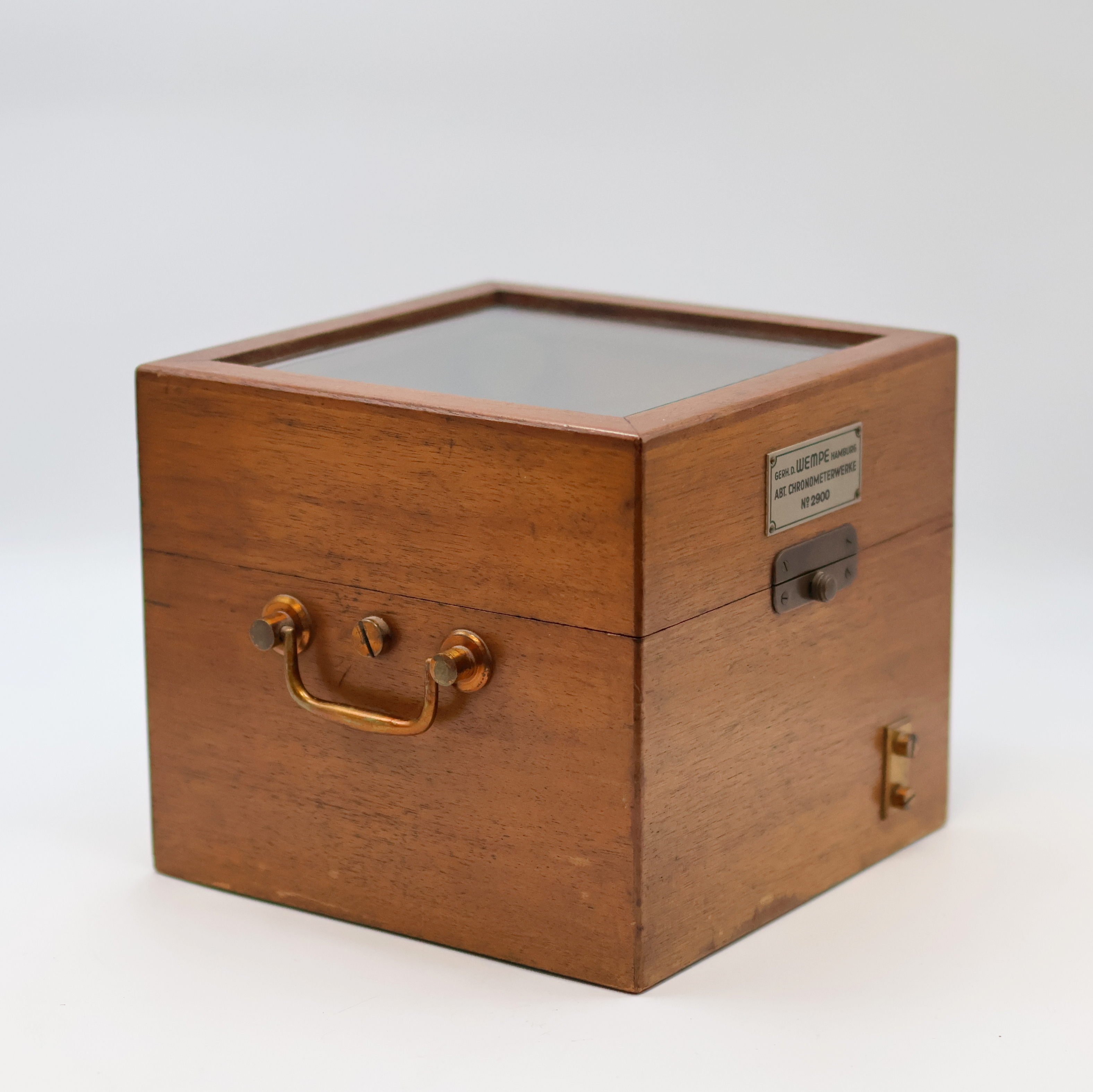 wooden box, beveled-glazed, matching movement and case number, aluminum- case in