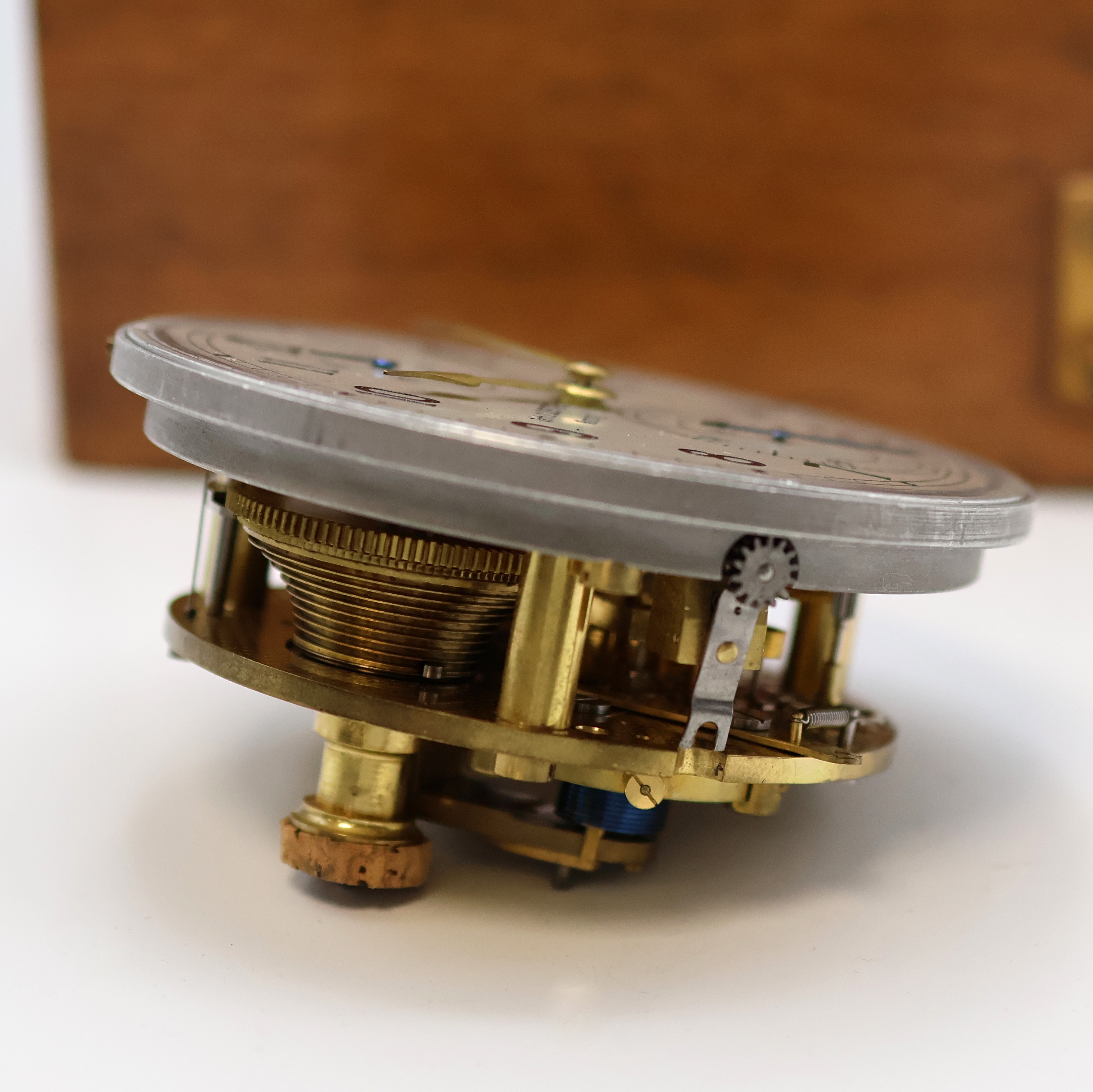 brass movement, chain/fusee, compensation-balance with blued cylindrical hairspring,