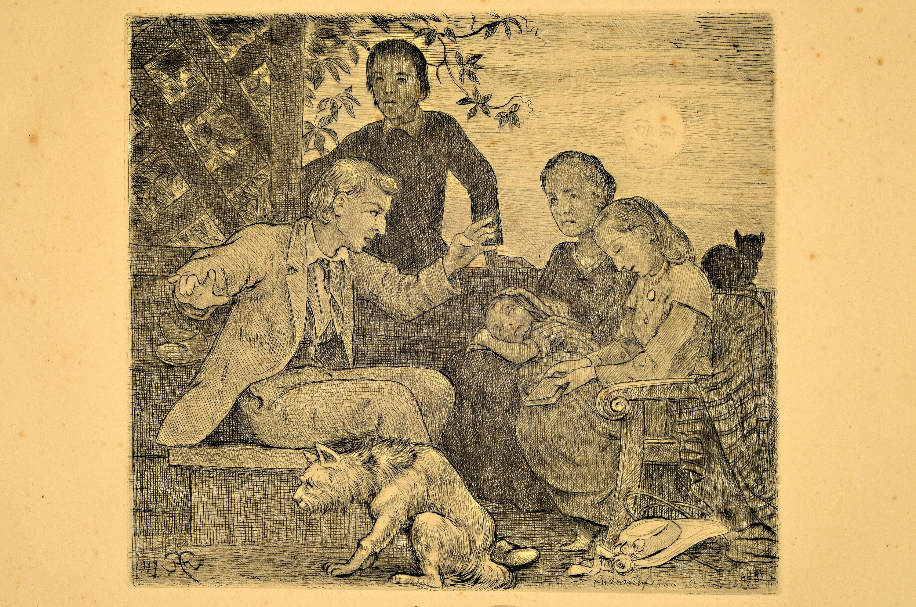 Hans Thoma, 1839 Bernau-1924 Karlsruhe, Radierung, "Der Erzähler", 1917, handsigniert,