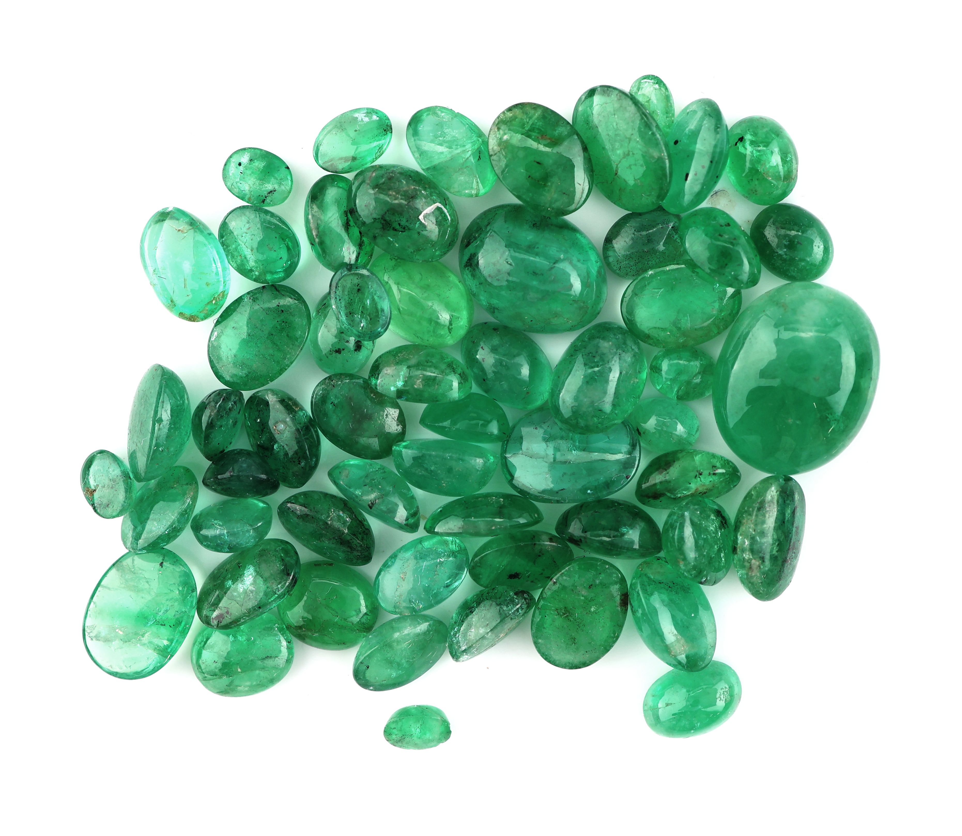 Lot lose Smaragde, zus. ca. 34.43 ct, Cabochons in versch. Größen, Formen und Farbnuancen Schätzpreis: 4000, - EUR