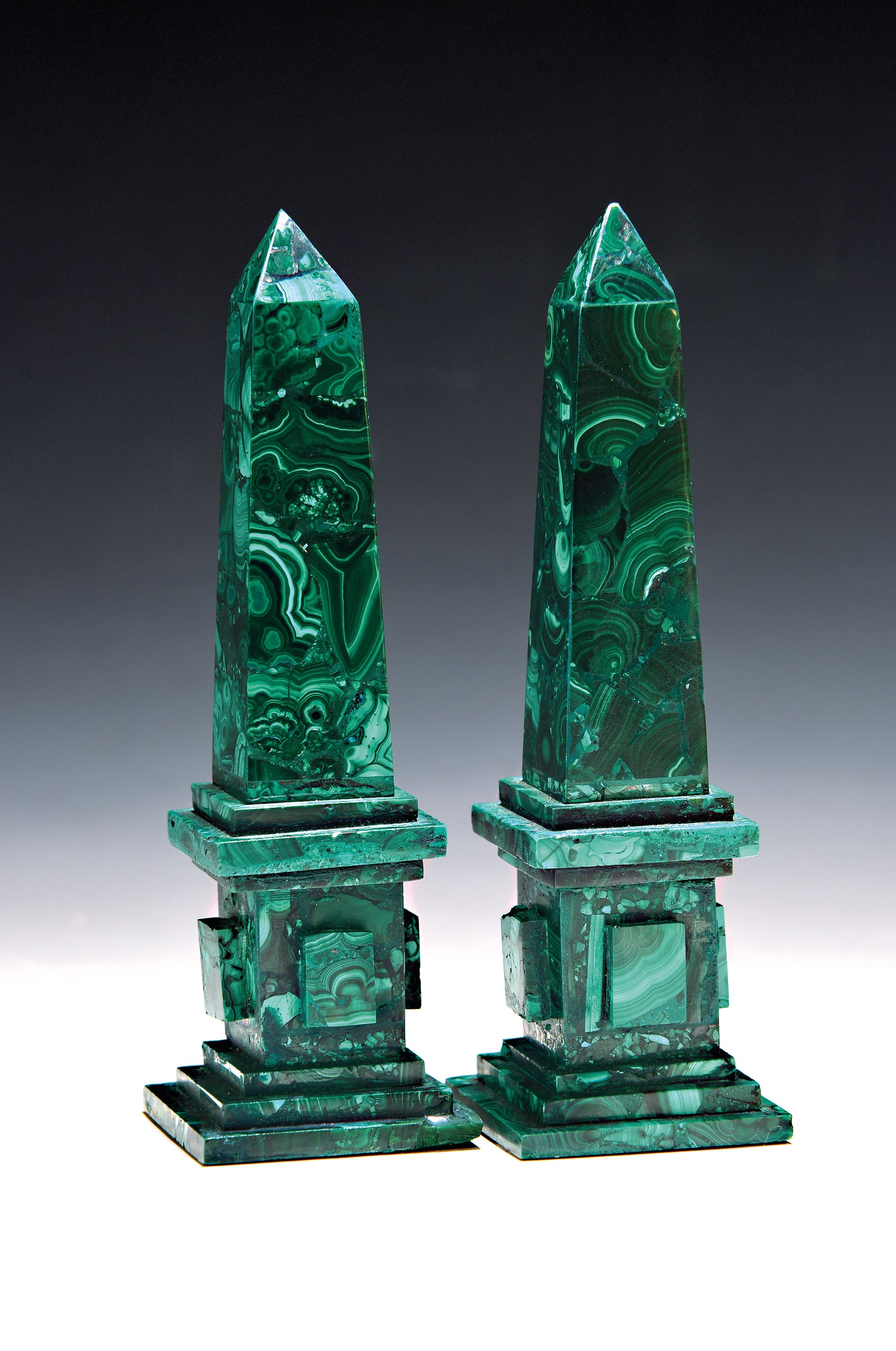 Paar Obelisken aus Malachit, neuzeitlich, H. je ca. 18.5cm