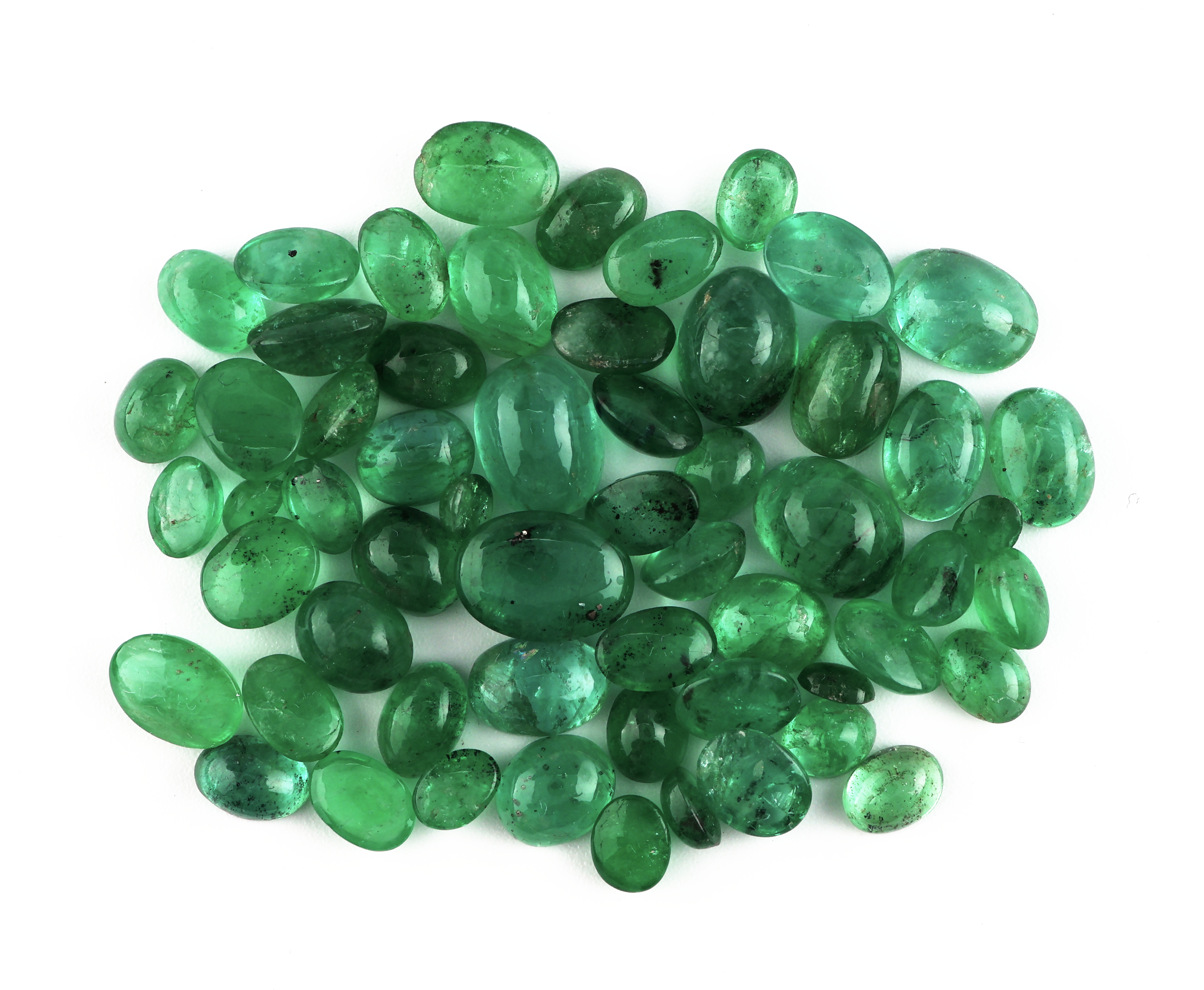 Lot lose Smaragde, zus. ca. 34.82 ct, Cabochons in versch. Größen, Formen und Farbnuancen Schätzpreis: 4000, - EUR