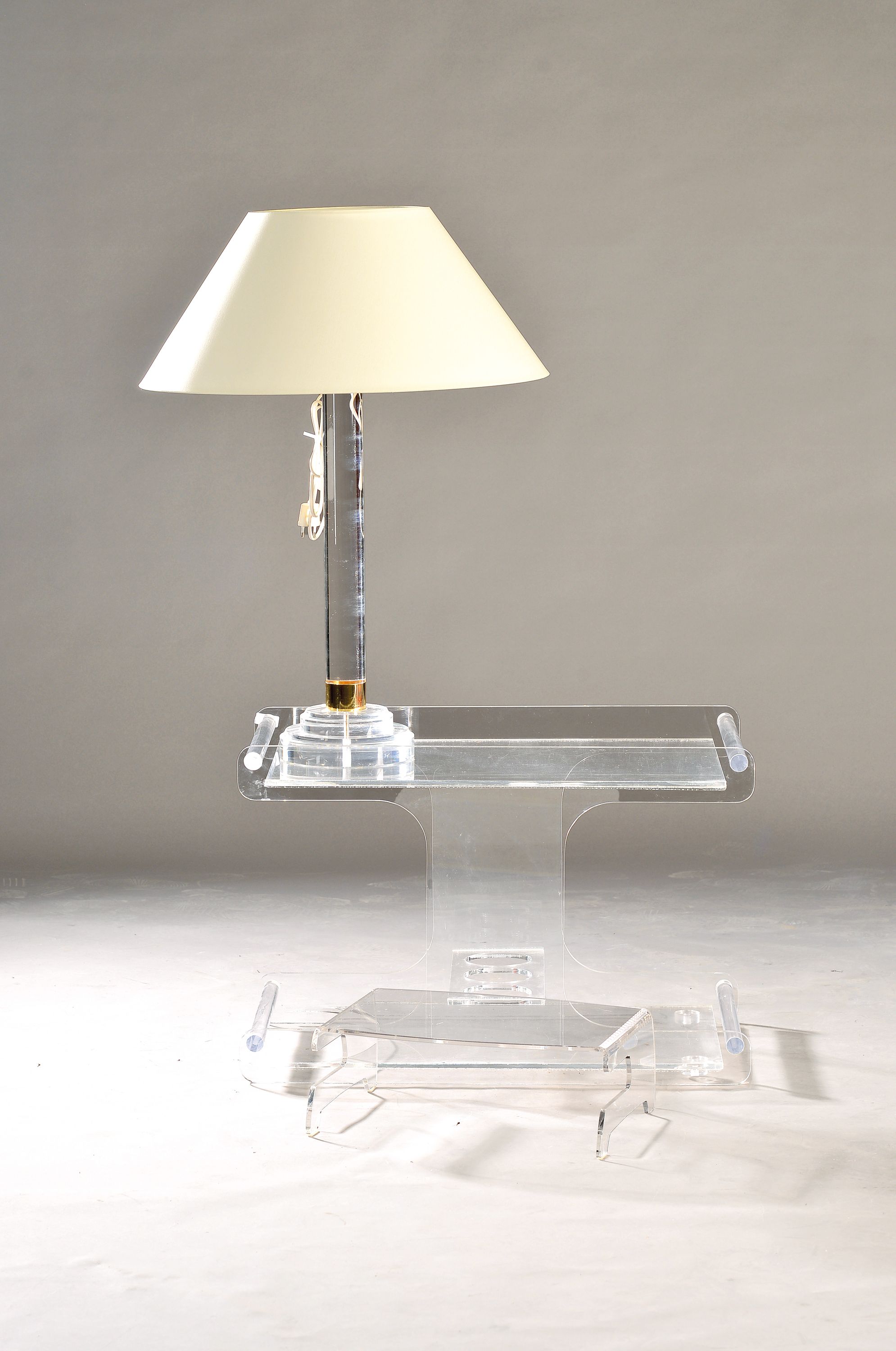 3 Teile aus Acryl, Italien, 20. Jh., Beistelltisch mit Flaschenfach unten, ca. 50x74x39cm;