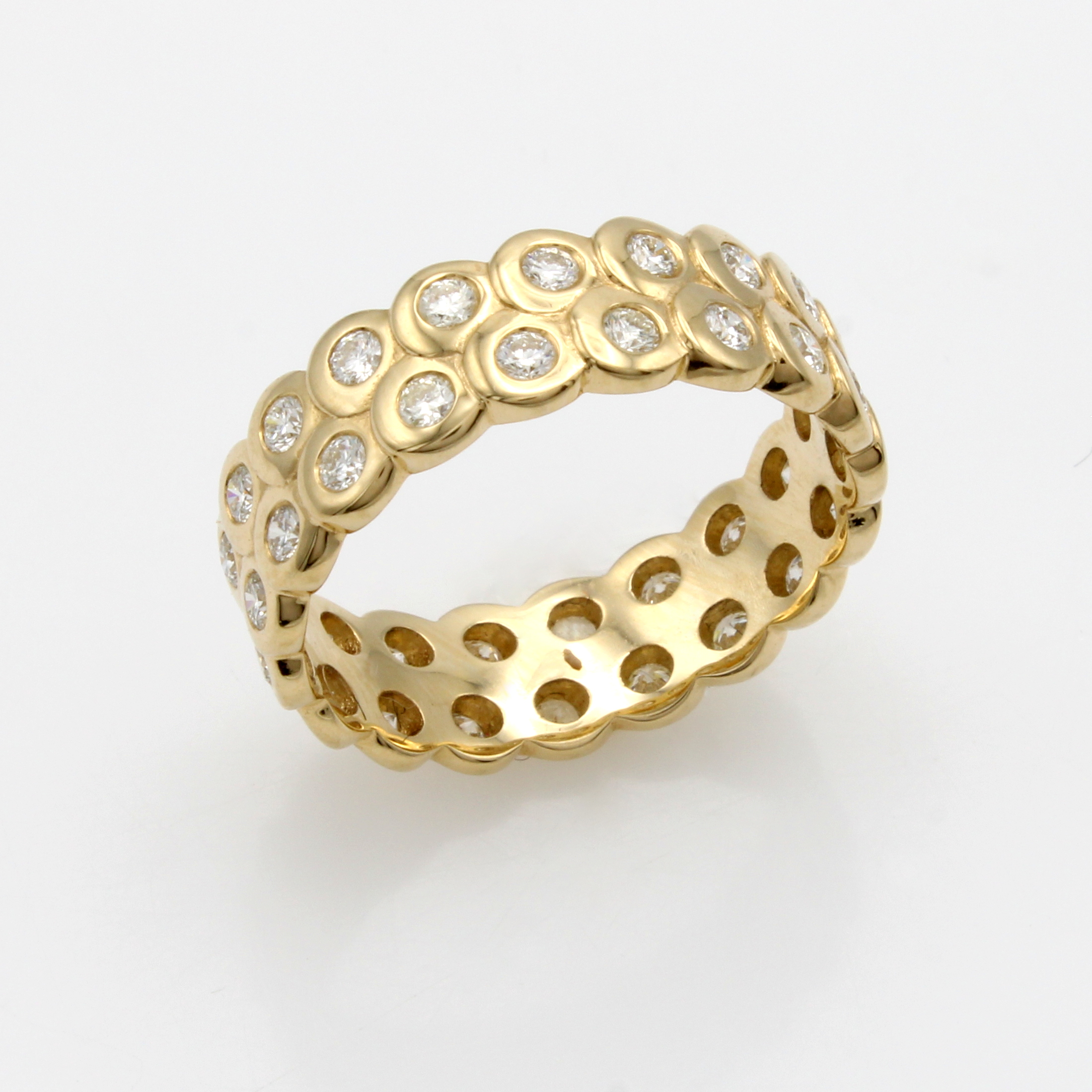 Ring mit Brillanten, GG 585/000, 2-rhg. Optik, 38 Brill. in Zargenfassungen zus. ca. 0.95 ct Weiß/lupenrein, RW ca. 55 Schätzpreis: 3170, - EUR