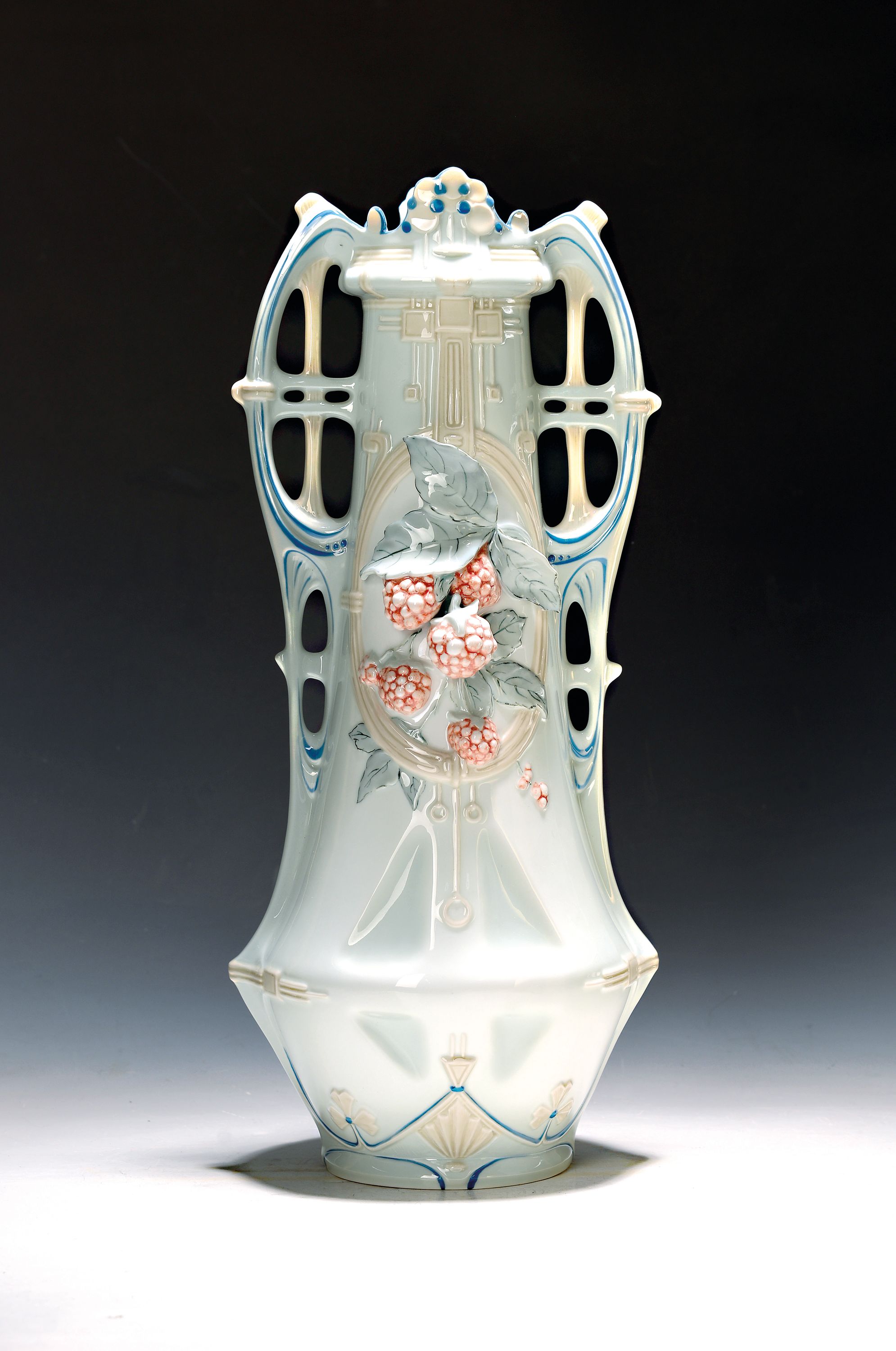 Vase, Royal Dux, um 1910-20, Feinsteingut, reich reliefierter Dekor von halbplastischen