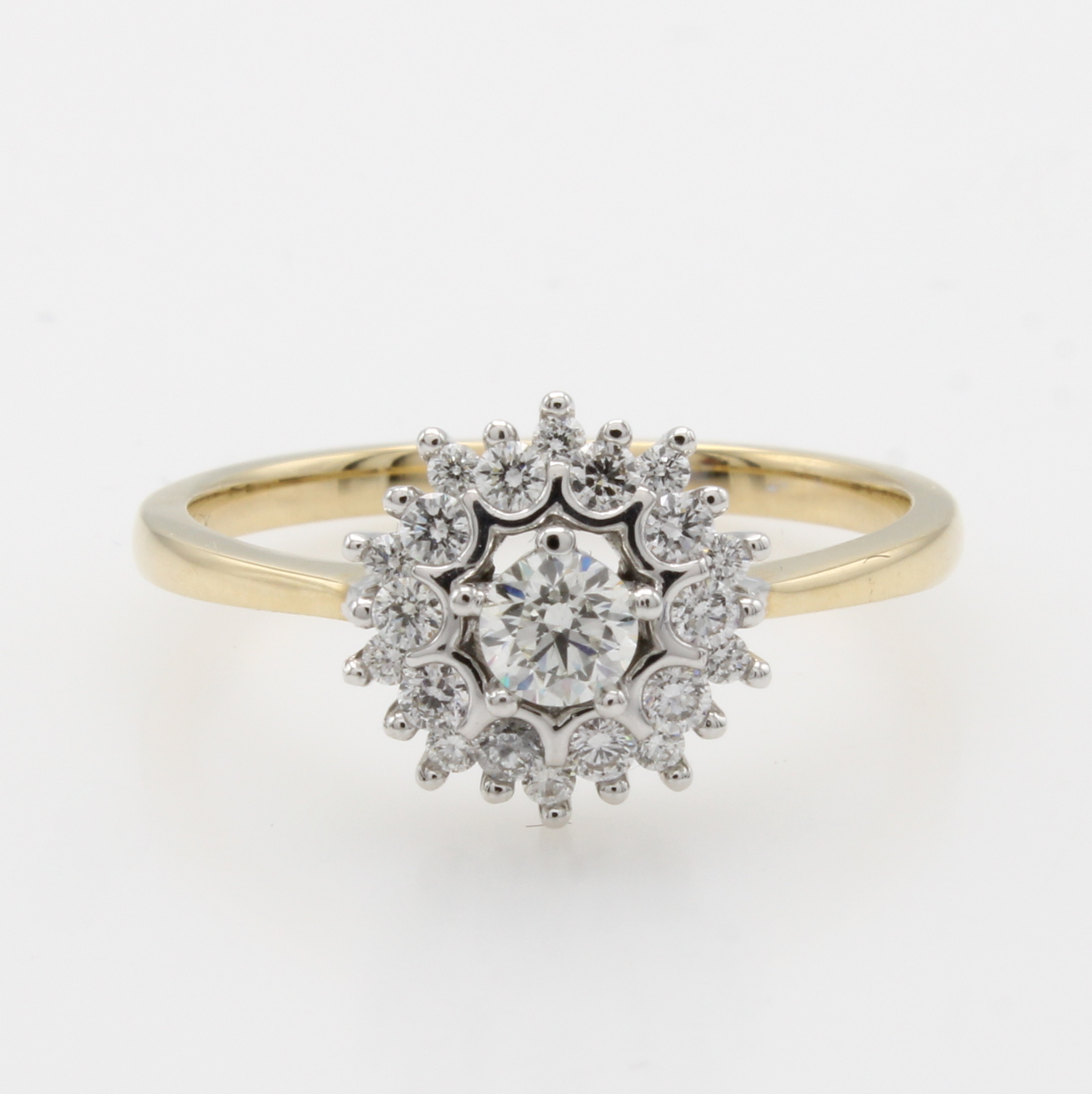 Ring mit Brillanten, GG 585/000, z.T. rhod., Solitär umgeben v. Besatzbrill. zus. ca. 0.50 ct Weiß/si, RW ca. 56 Schätzpreis: 1690, - EUR