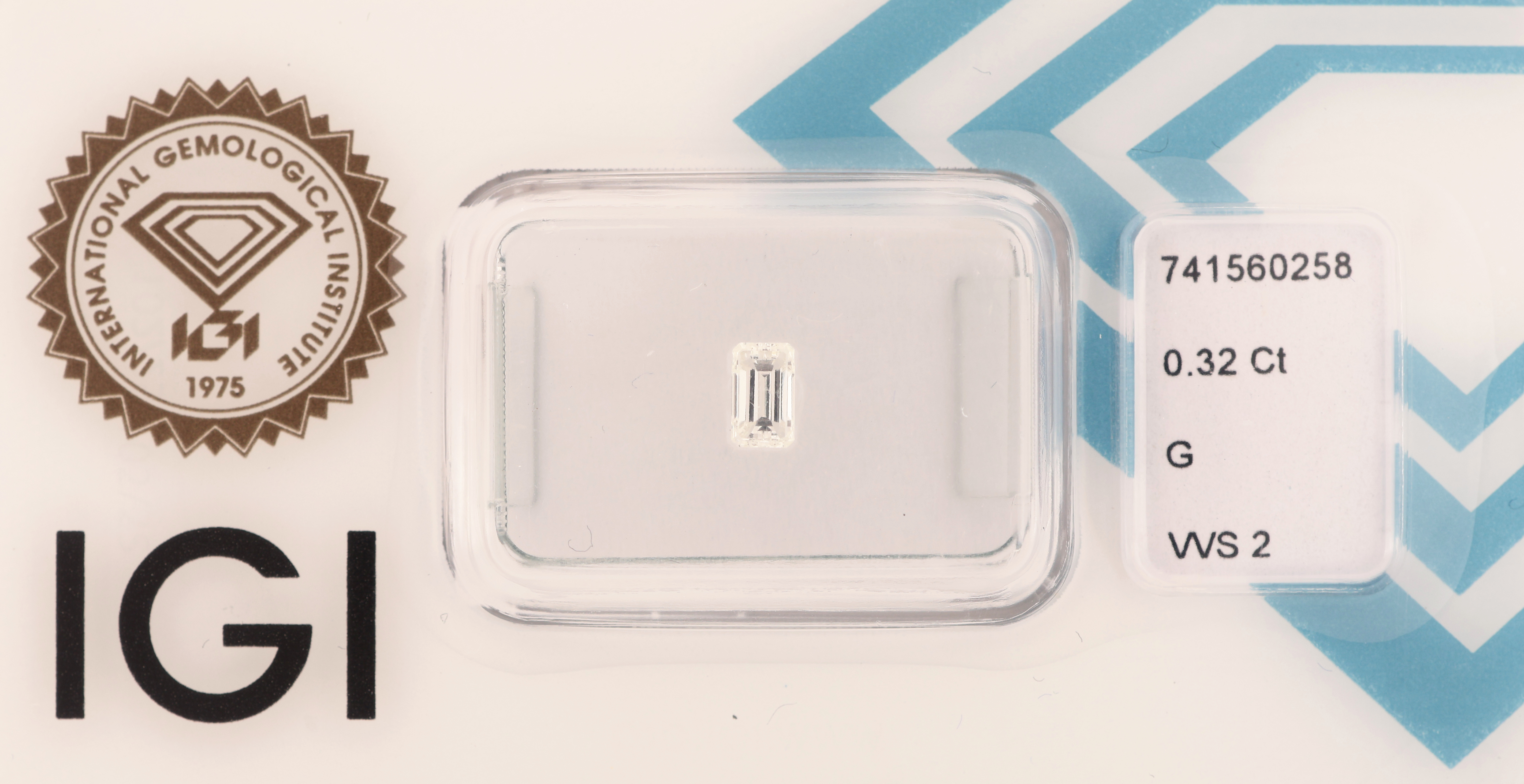Loser Diamant, 0.32 ct feines Weiß(G)/vvs2, Emerald Cut, eingeschweißt, mit IGI-Expertise Schätzpreis: 900, - EUR
