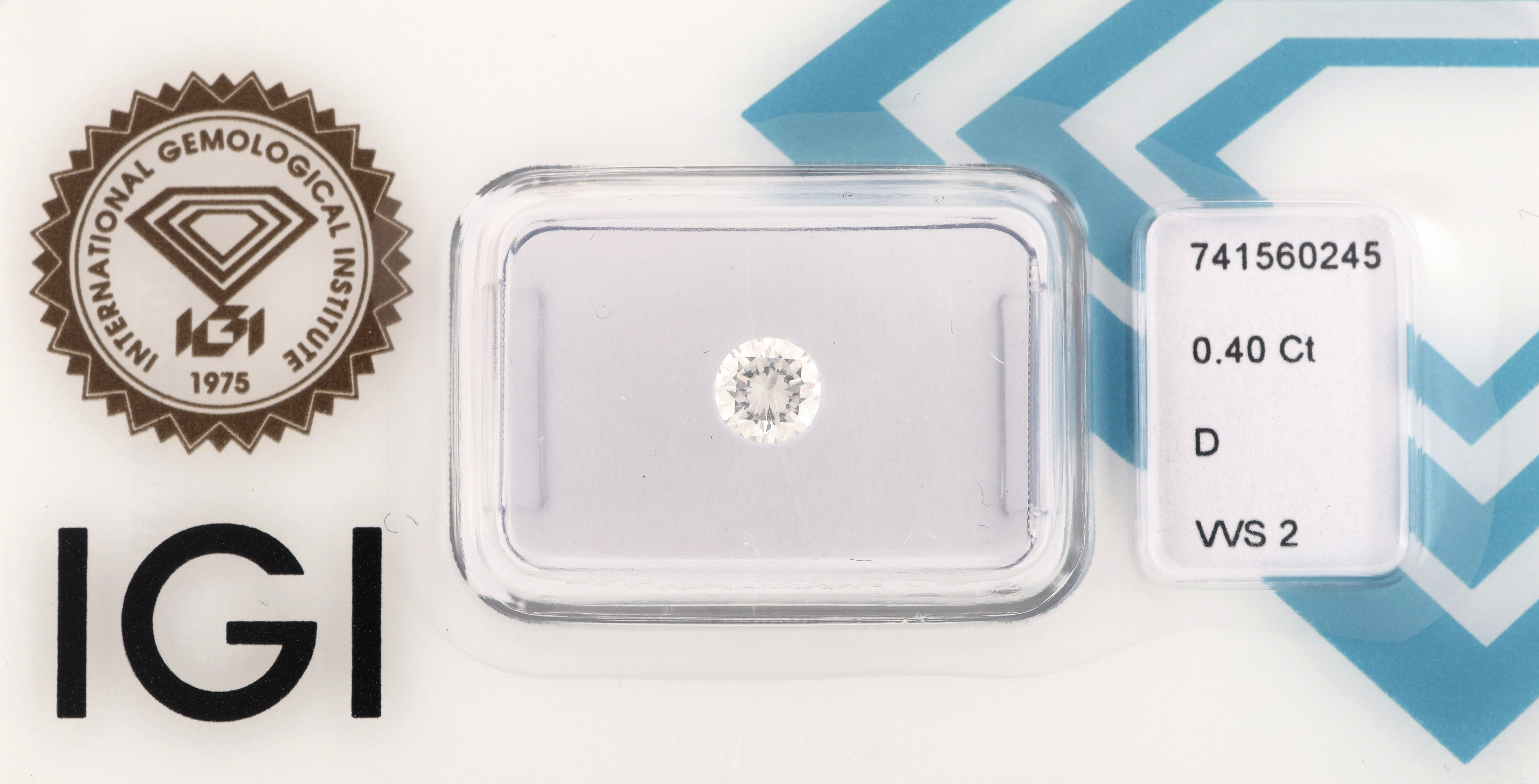 Loser Brillant, 0.40 ct hochfeines Weiß+(D)/vvs2, eingeschweißt, mit IGI- Expertise Schätzpreis: 1900, - EUR