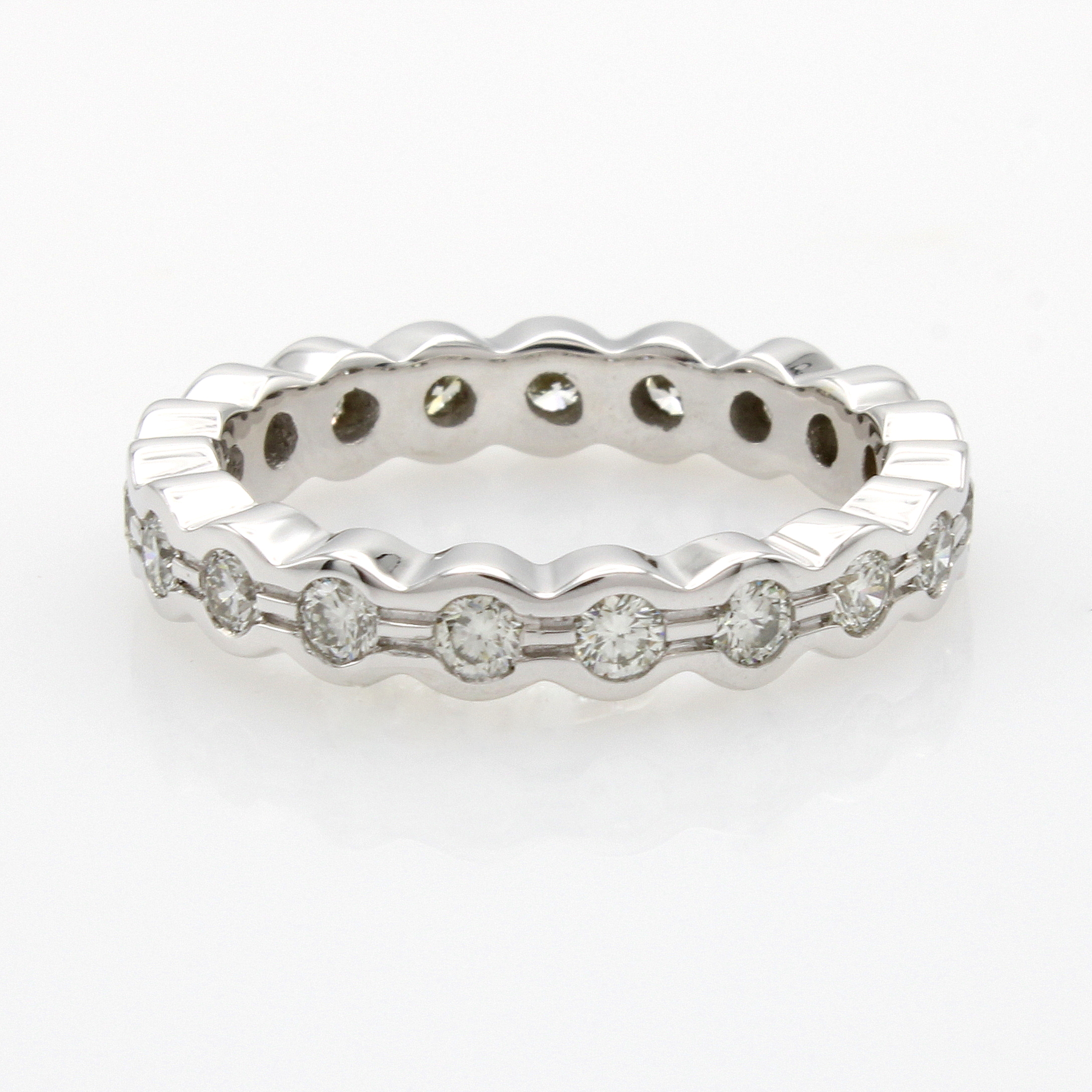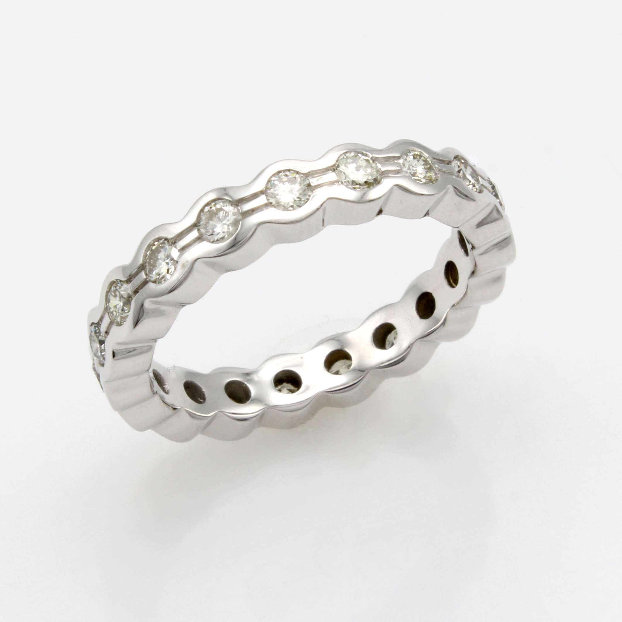 Memoryring mit Brillanten, WG 585/000, geriefte Zwischenflächen, 19 Brill. zus. ca. 1 ct get.Weiß/lupenrein, RW ca. 56 Schätzpreis: 3890, - EUR