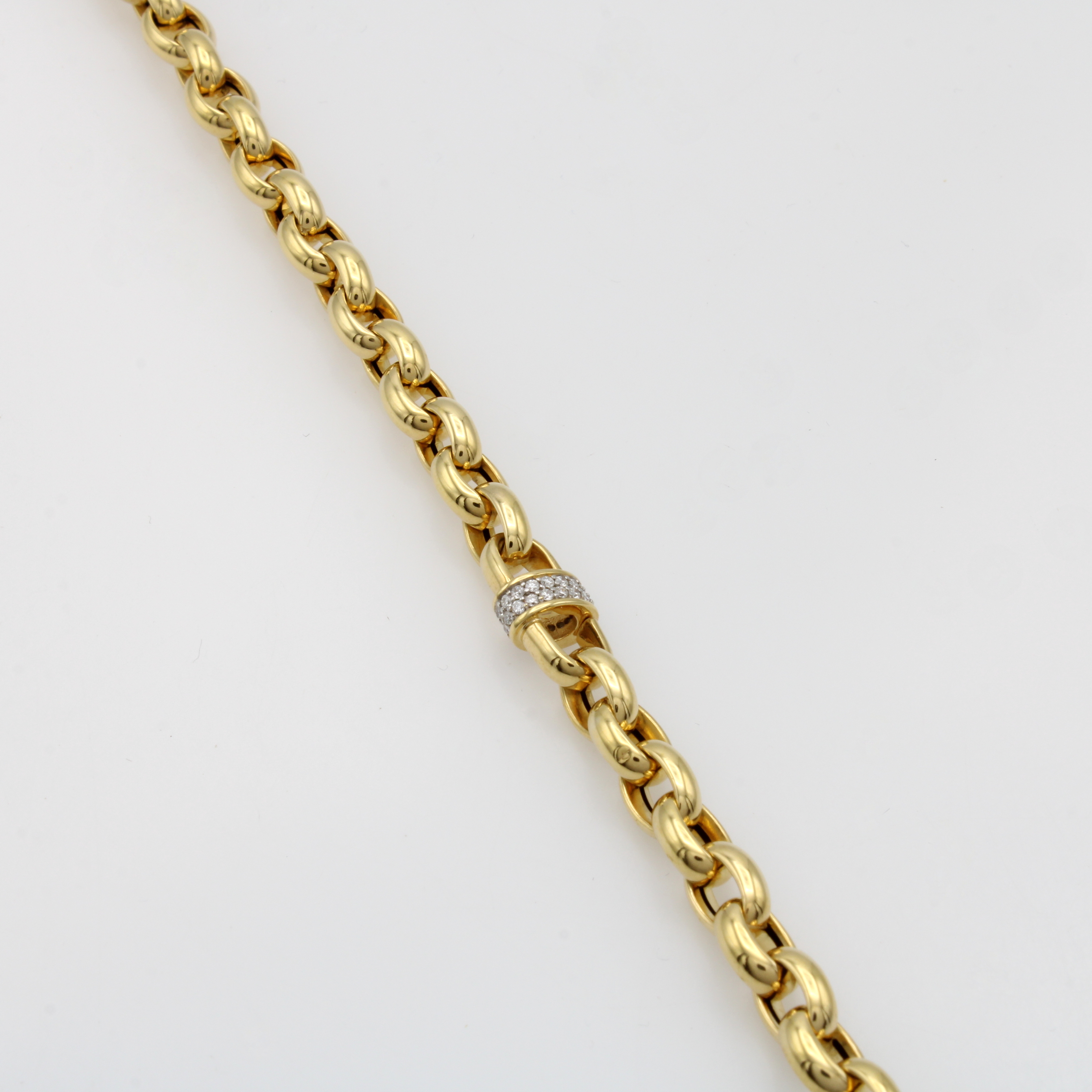Gliederarmband mit Brillanten, GG 585/000, ovale Glieder, Brill. in Mittelsteg gef. zus. ca. 0.15 ct Weiß/p, Karabinerschl., L. ca. 19 cm Schätzpreis: 2000, - EUR