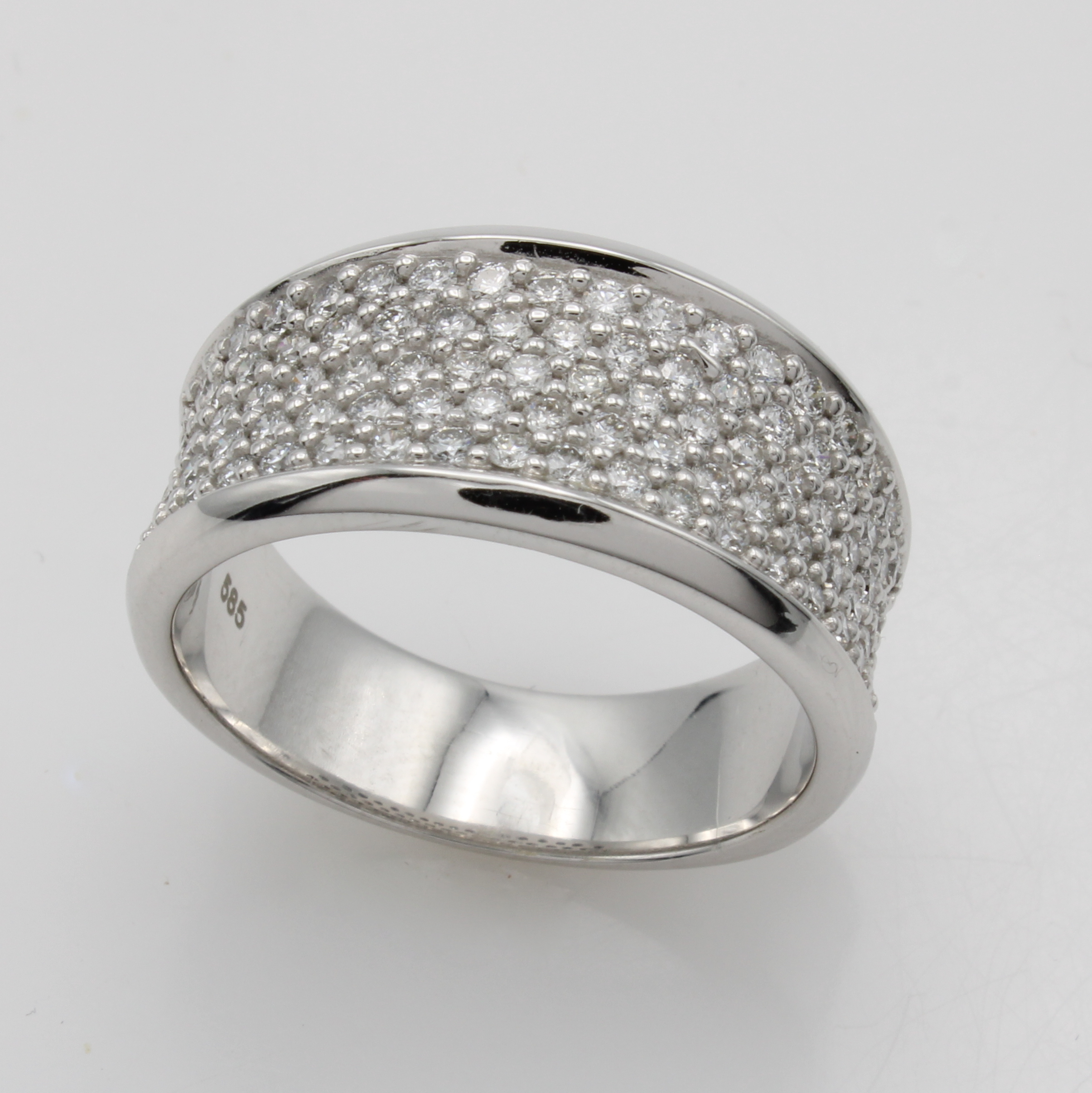 Ring mit Brillanten, WG 585/000, Brill. in Pavéefassungen zus. ca. 1 ct Weiß/p, RW ca. 57 Schätzpreis: 4700, - EUR