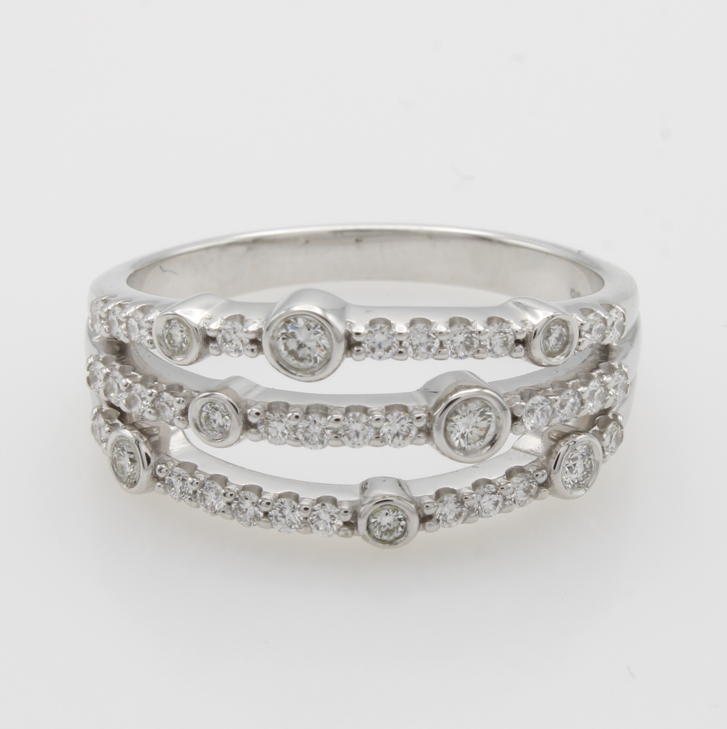 Ring mit Brillanten, WG 585/000, Brill. in 3 Reihen gef. zus. ca. 0.45 ct Weiß/si, RW ca. 56 Schätzpreis: 2330, - EUR