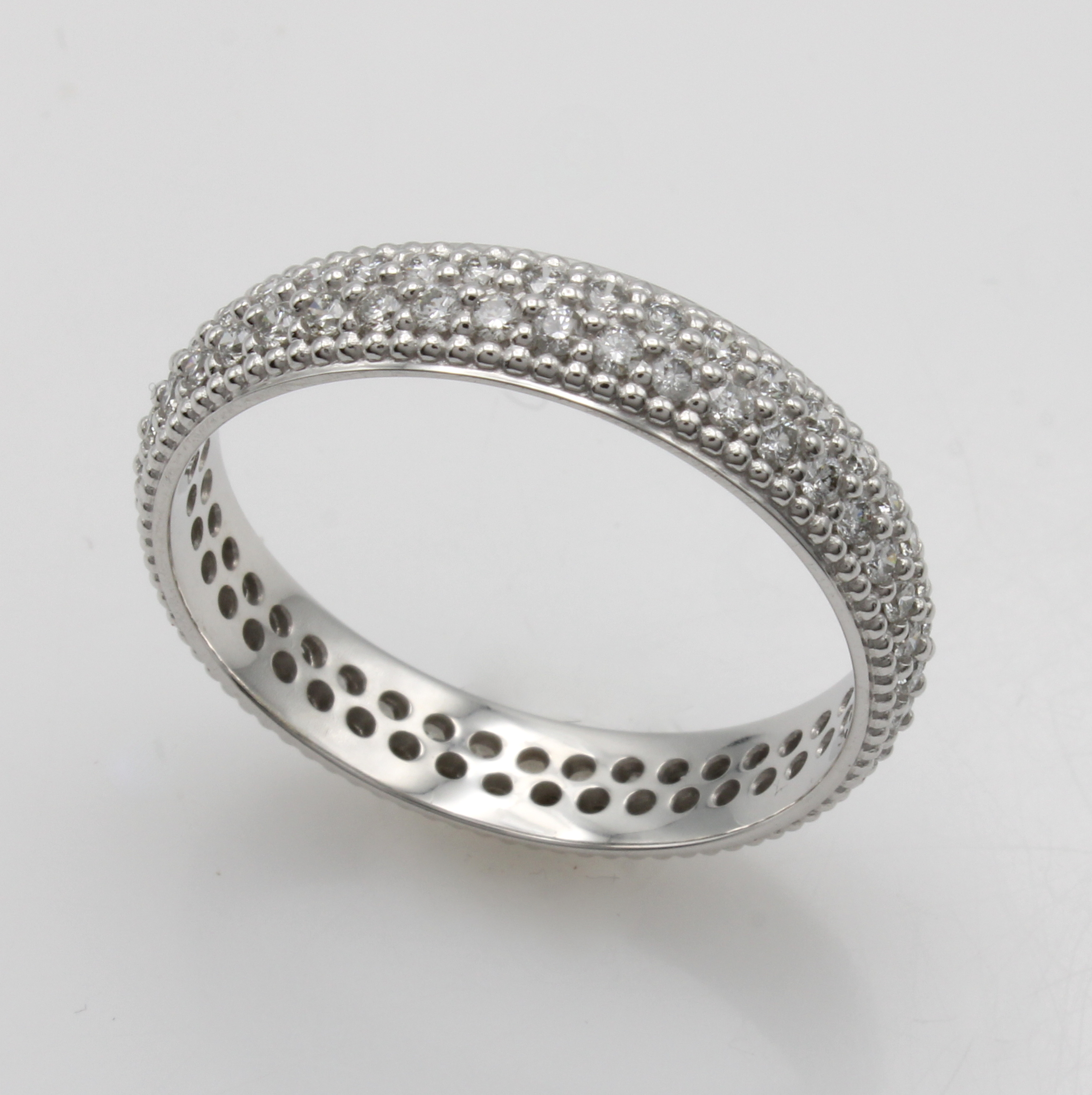 Ring mit Brillanten, WG 585/000, Schiene rundum bes. m. Brill. zus. ca. 1 ct Weiß/p, Pavéefassungen, RW ca. 62 Schätzpreis: 2970, - EUR
