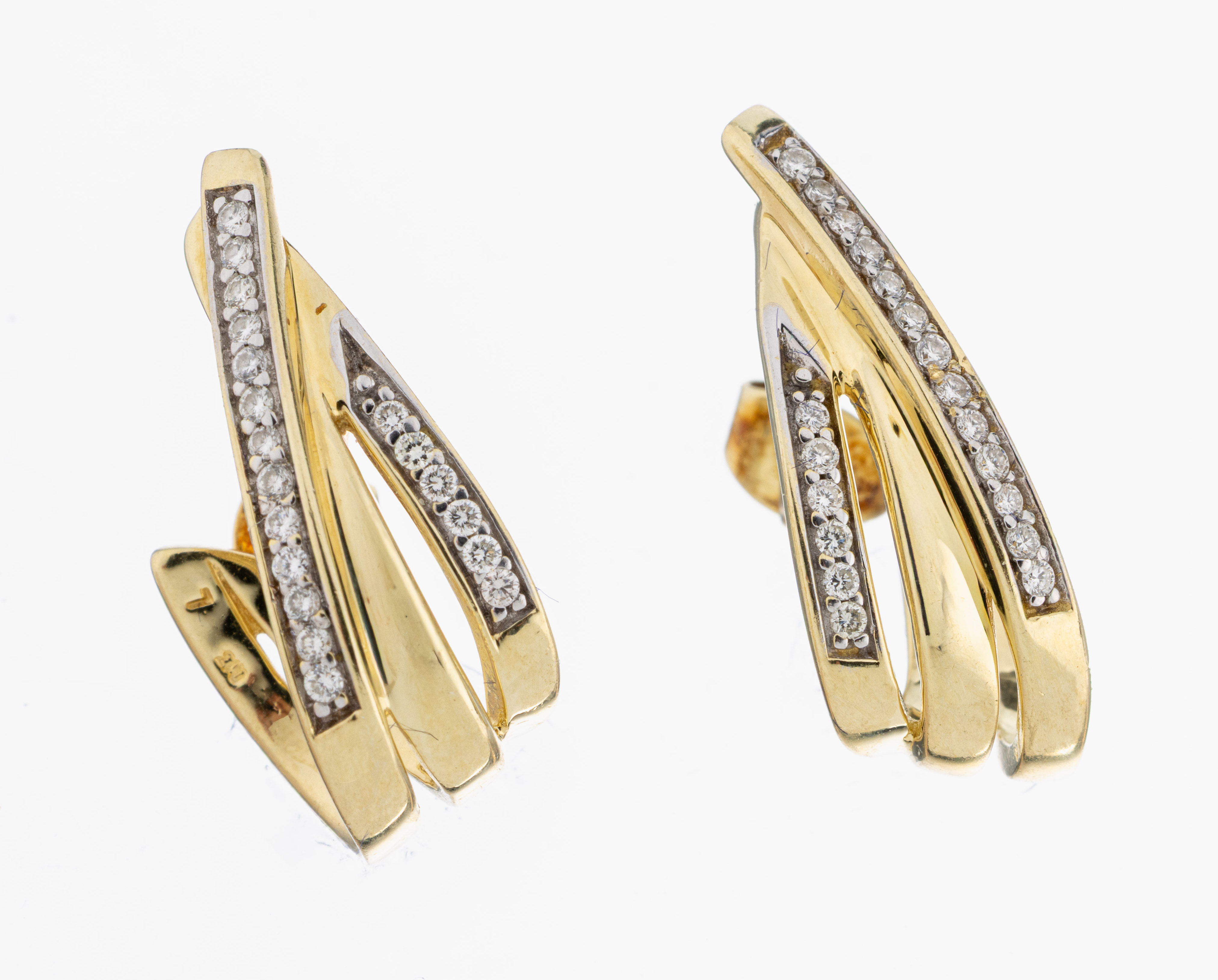 Paar 14 kt Gold Brillant-Ohrstecker, GG 585/000, geschwungen, 38 Brillanten zus.