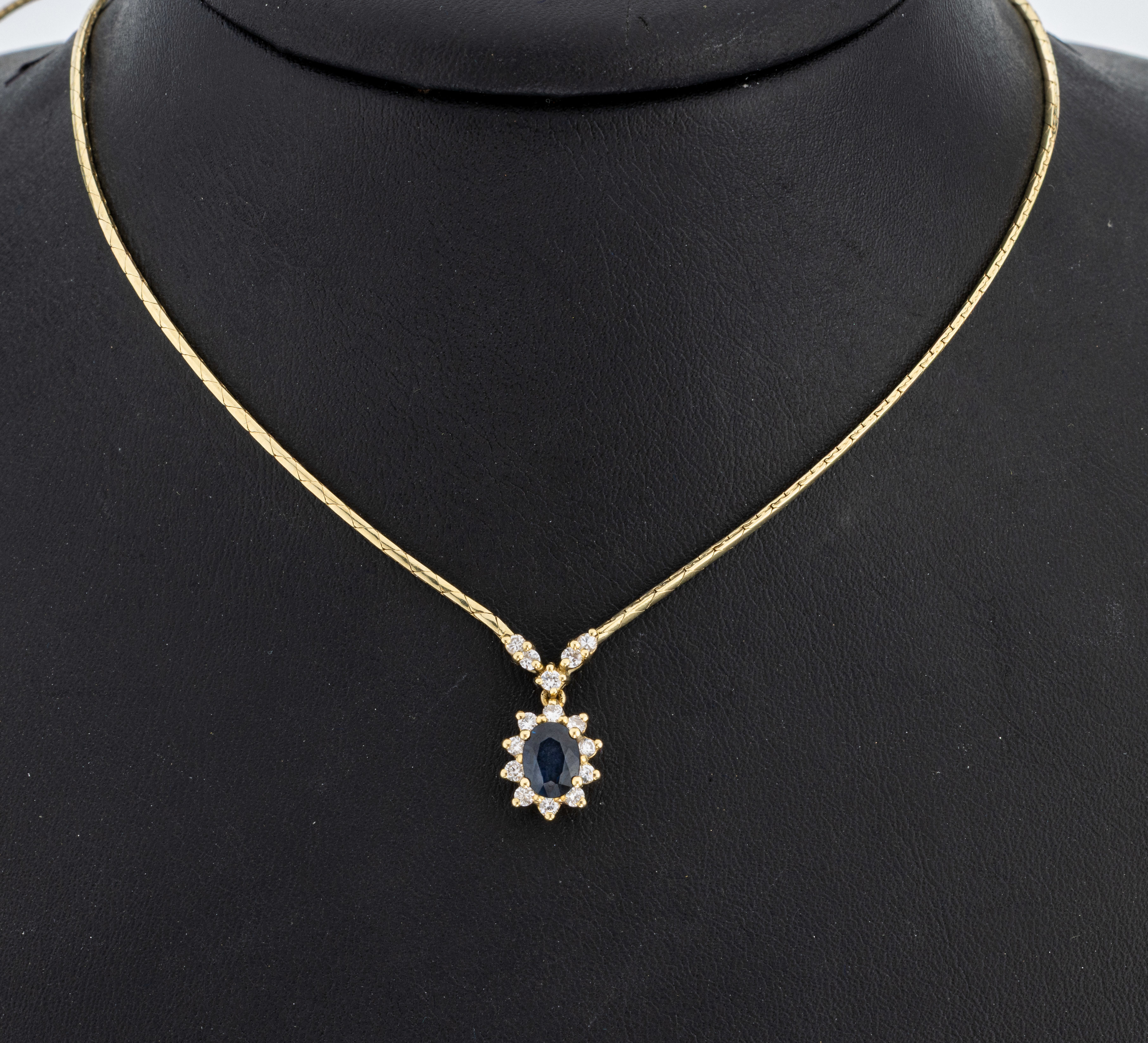 14 kt Gold Saphir-Brillant-Collier, GG 585/000, Mittelteil mit bewegl. Abhängung,