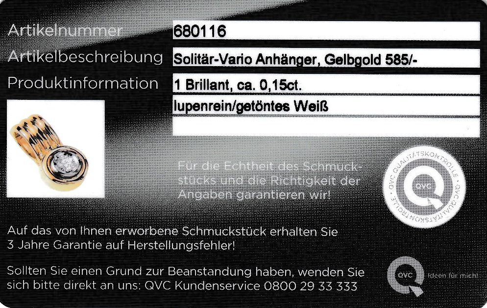 ct get.Weiß/lr, L. ca. 1.8 cm, ca. 3.5 g, QVC- Schmuckkarte anbei Schätzpreis: