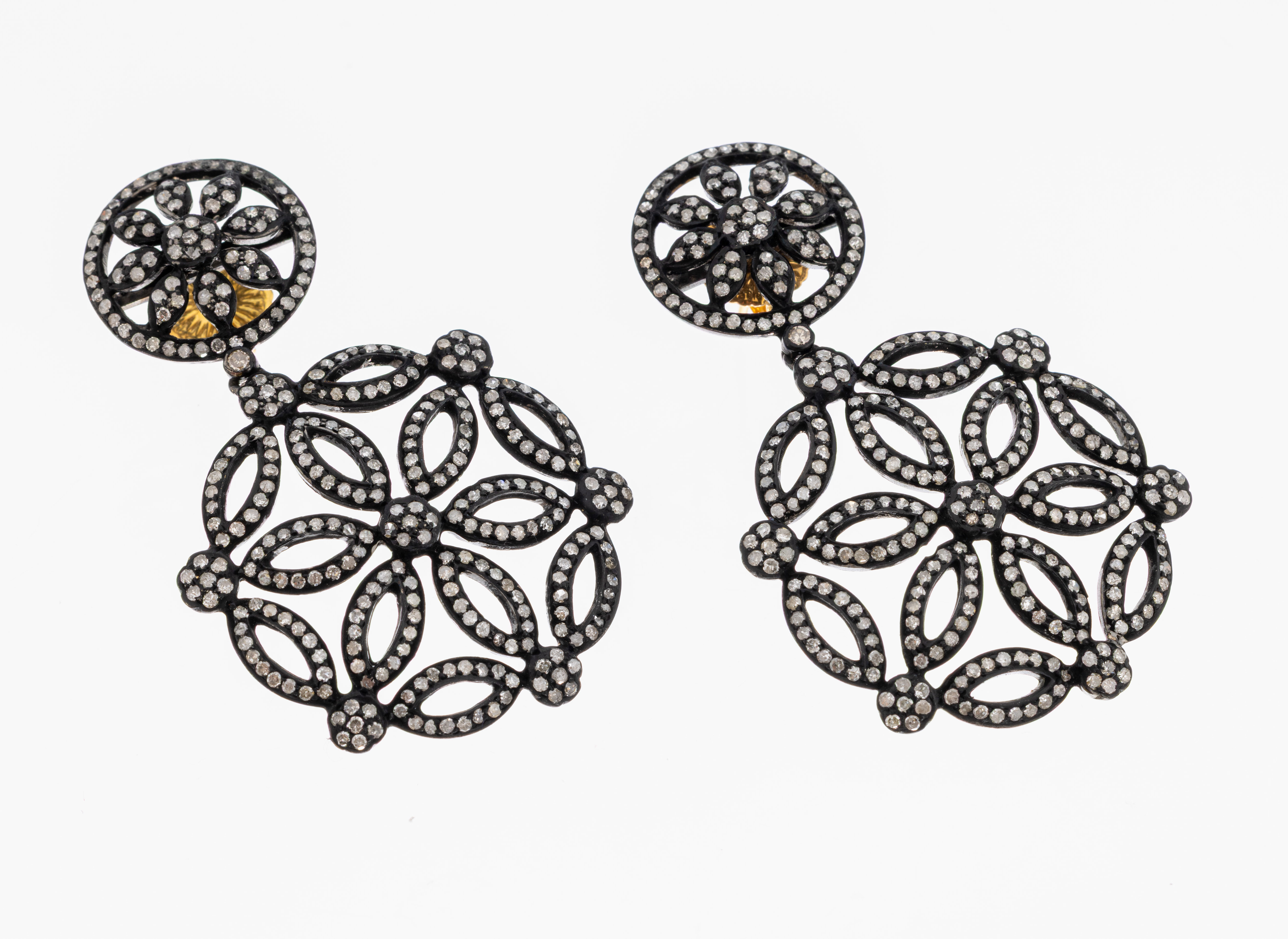 Paar Diamant-Ohrstecker, 925er Silber geschwärzt, bewegl., geschwungen geometrisch,