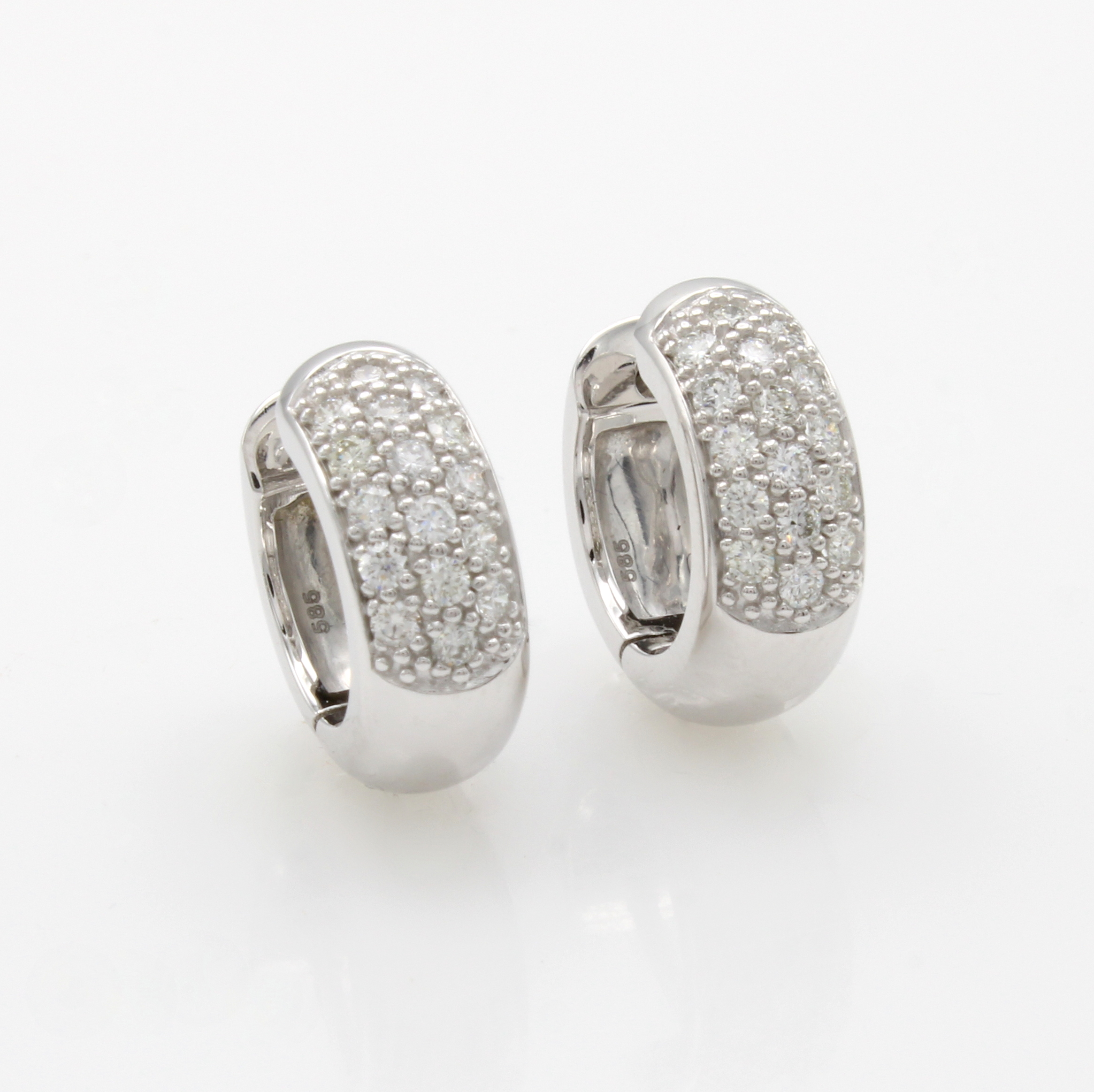 Paar Klappcreolen mit Brillanten, WG 585/000, 32 Brill. zus. ca. 0.50 ct Weiß/lupenrein, Br. ca. 6 mm, D. ca. 15 mm Schätzpreis: 3430, - EUR