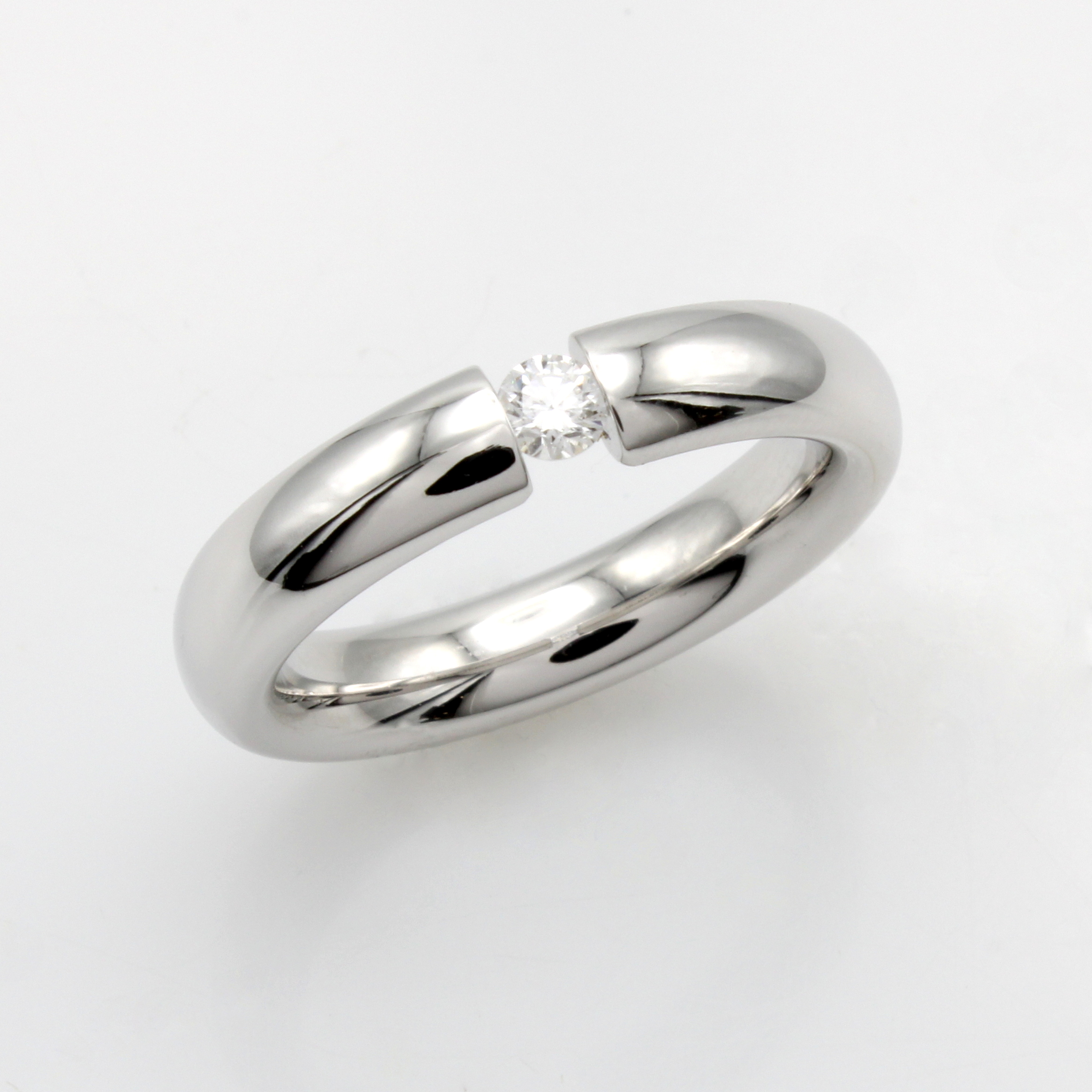 Spannring mit Brillant, WG 750/000, Brill. ca. 0.10 ct feines Weiß/si, RW ca. 52 Schätzpreis: 4000, - EUR