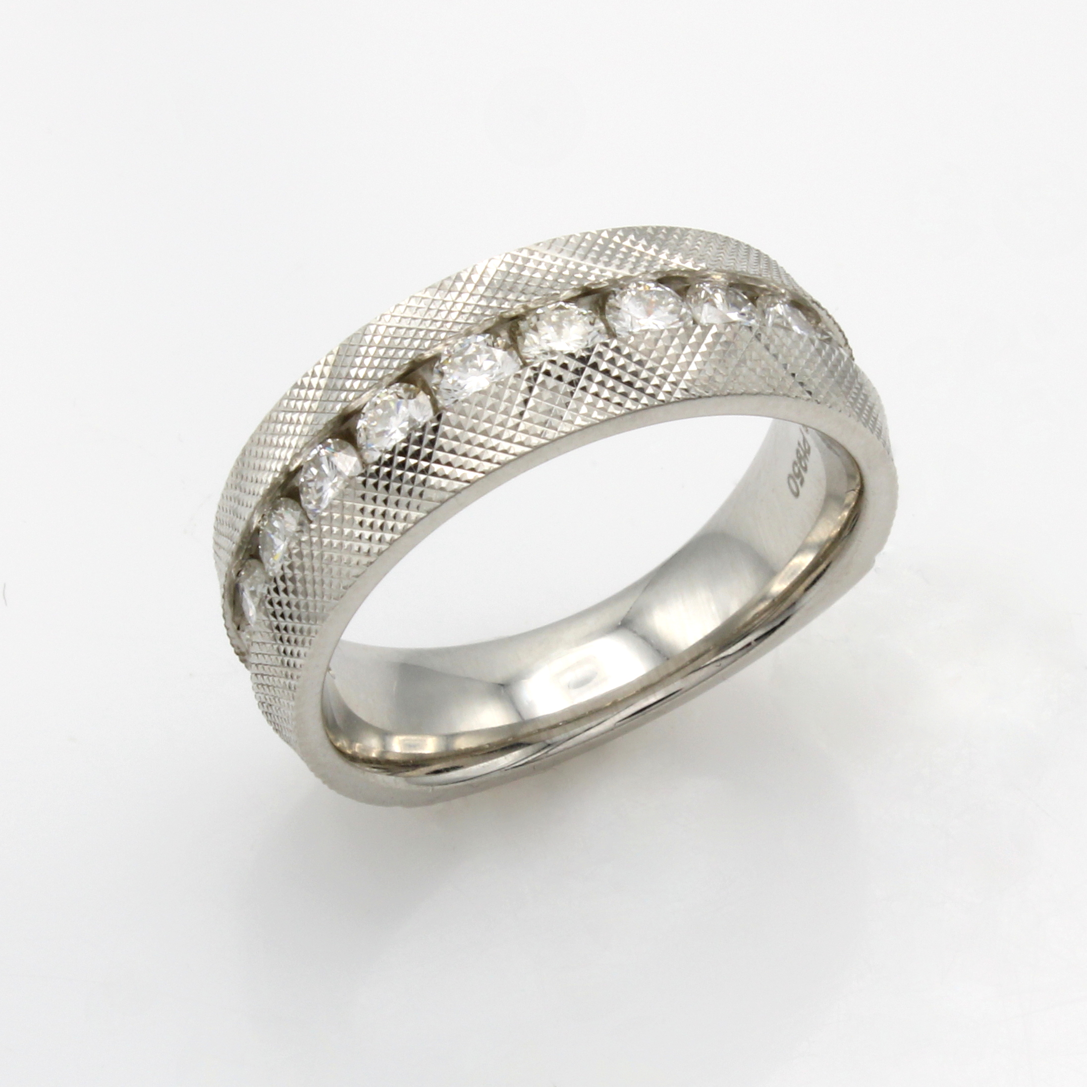 Ring mit Brillanten, Platin 950/000, z.T. fein ziseliert, Brill. in Kanalfassung zus. ca. 1 ct Weiß/lupenr., RW ca. 53 Schätzpreis: 4320, - EUR