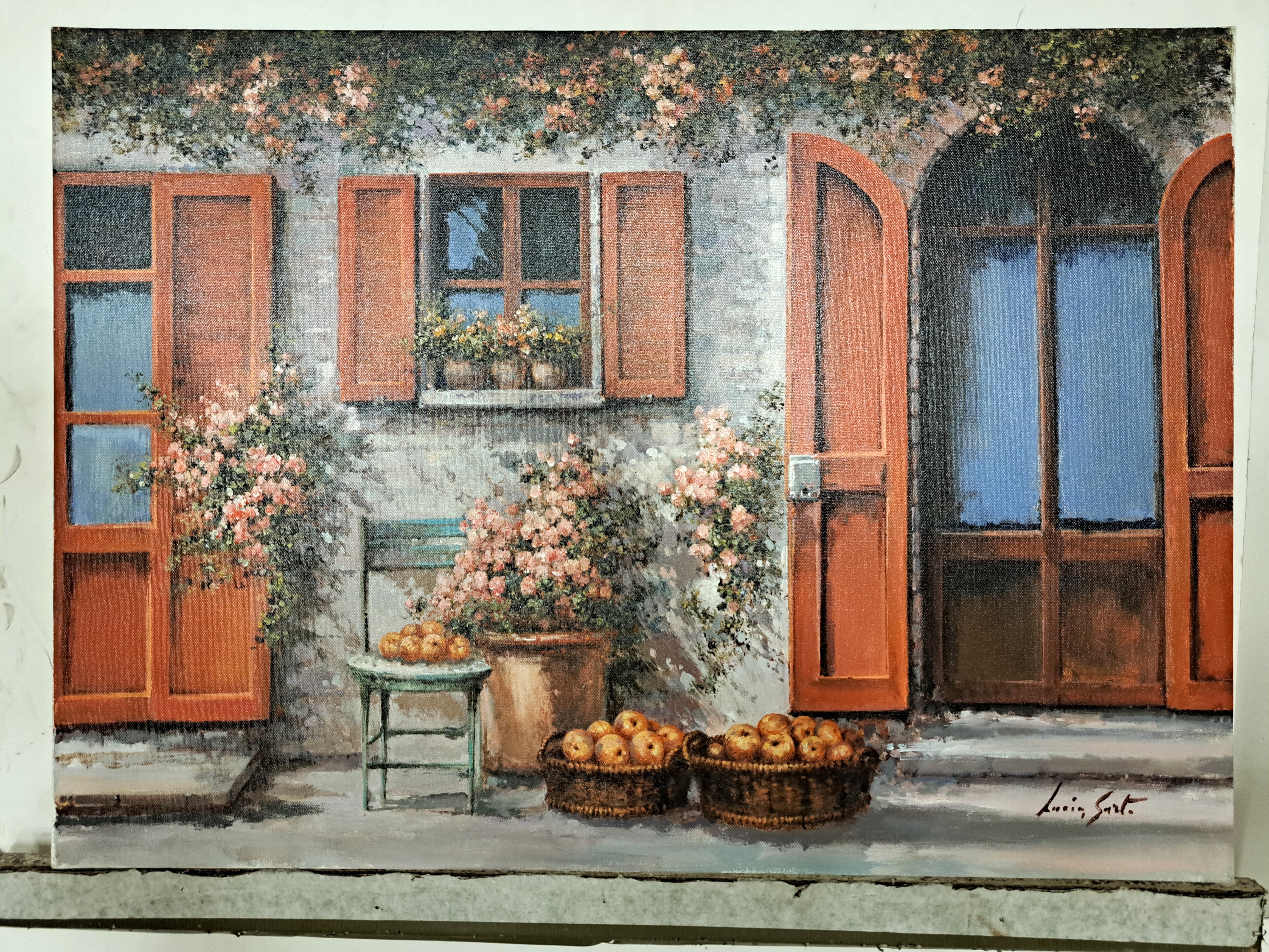 Lucia Sarto, geb. 1950 Porporetto, Blumen vor dem Haus, Öl/Lwd, rechts unten sign.,