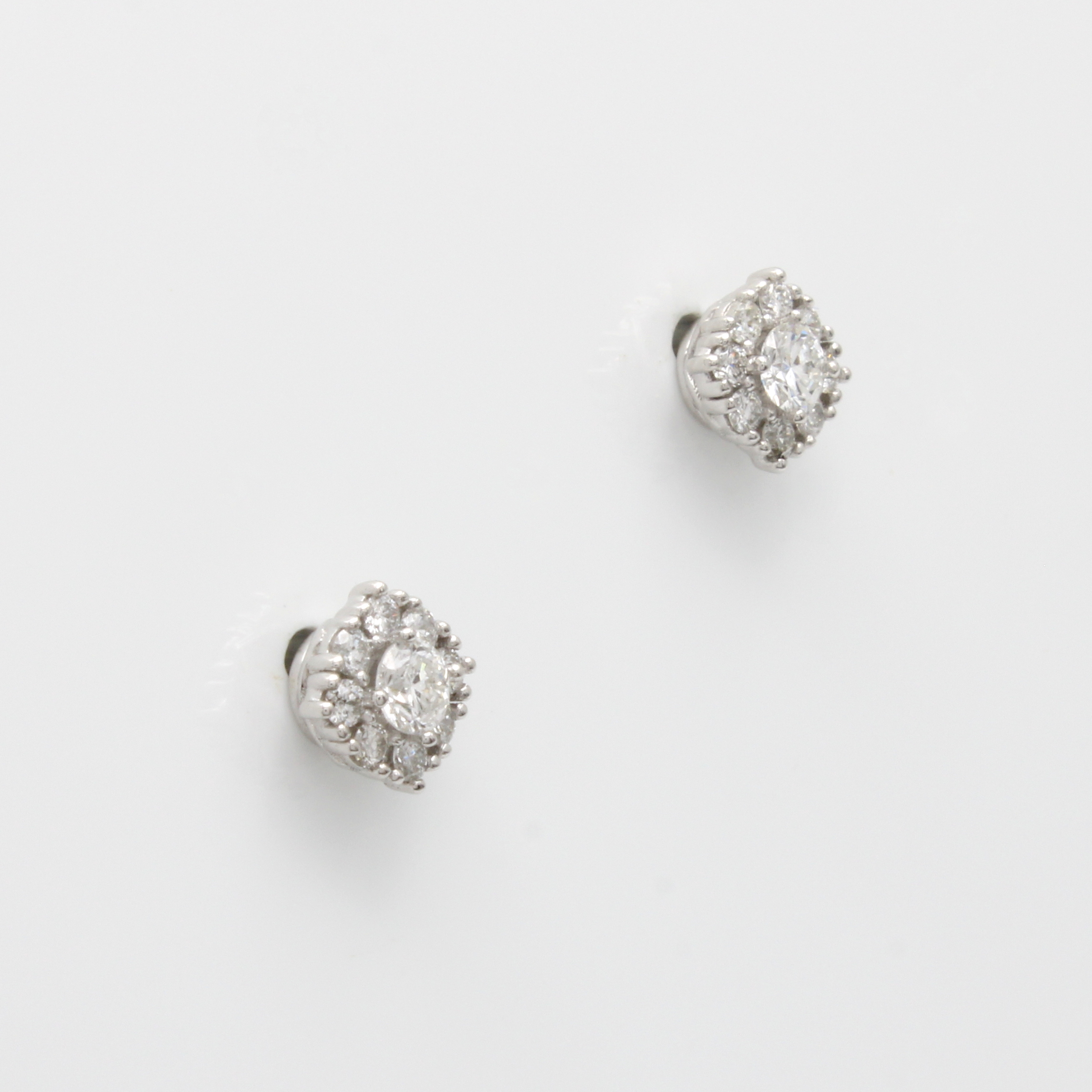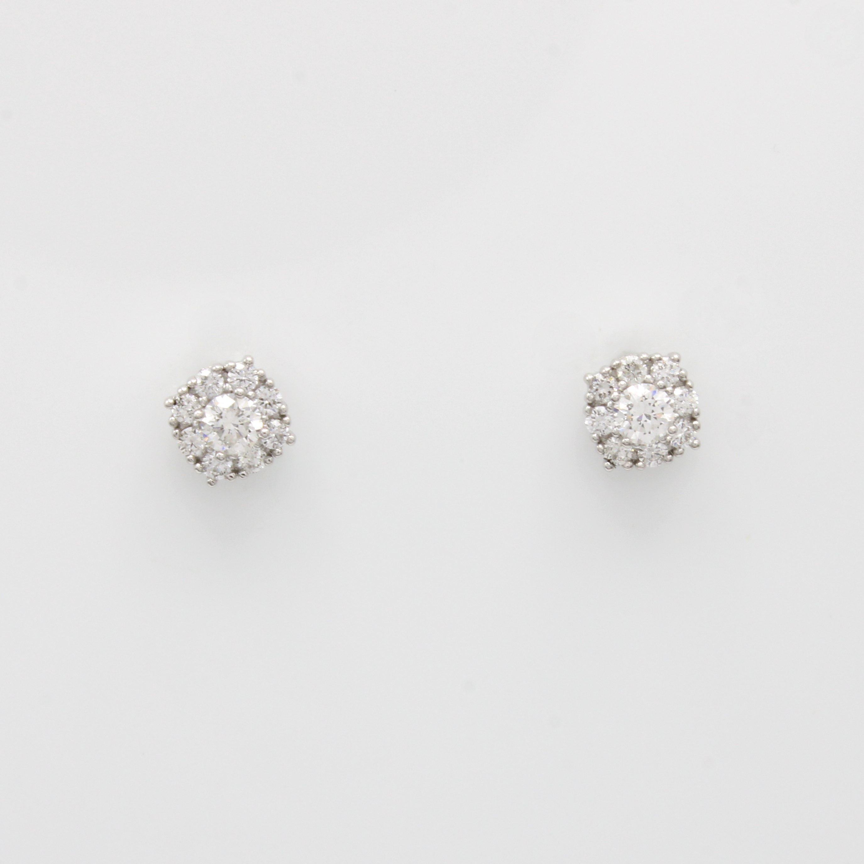 Paar Ohrstecker mit Brillanten, WG 585/000, 2 Brill. mittig gef. zus. ca. 0.20 ct umgeben v. insges. 16 Brill. zus. ca. 0.20 ct Weiß/p Schätzpreis: 1250, - EUR