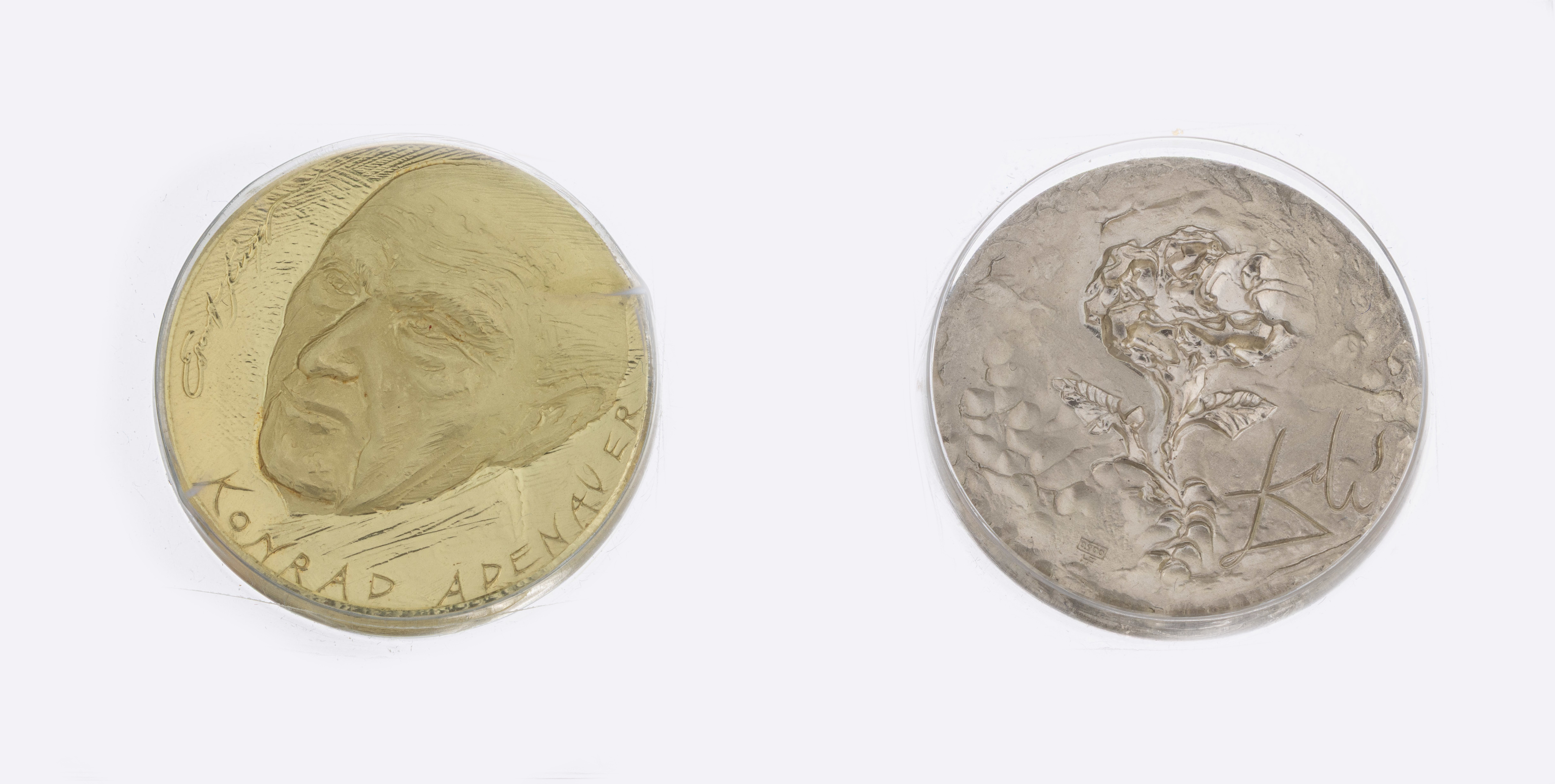 AV: Adenauer Portrait, RV: Rose mit Ritzsignatur, ca. 23.2 g