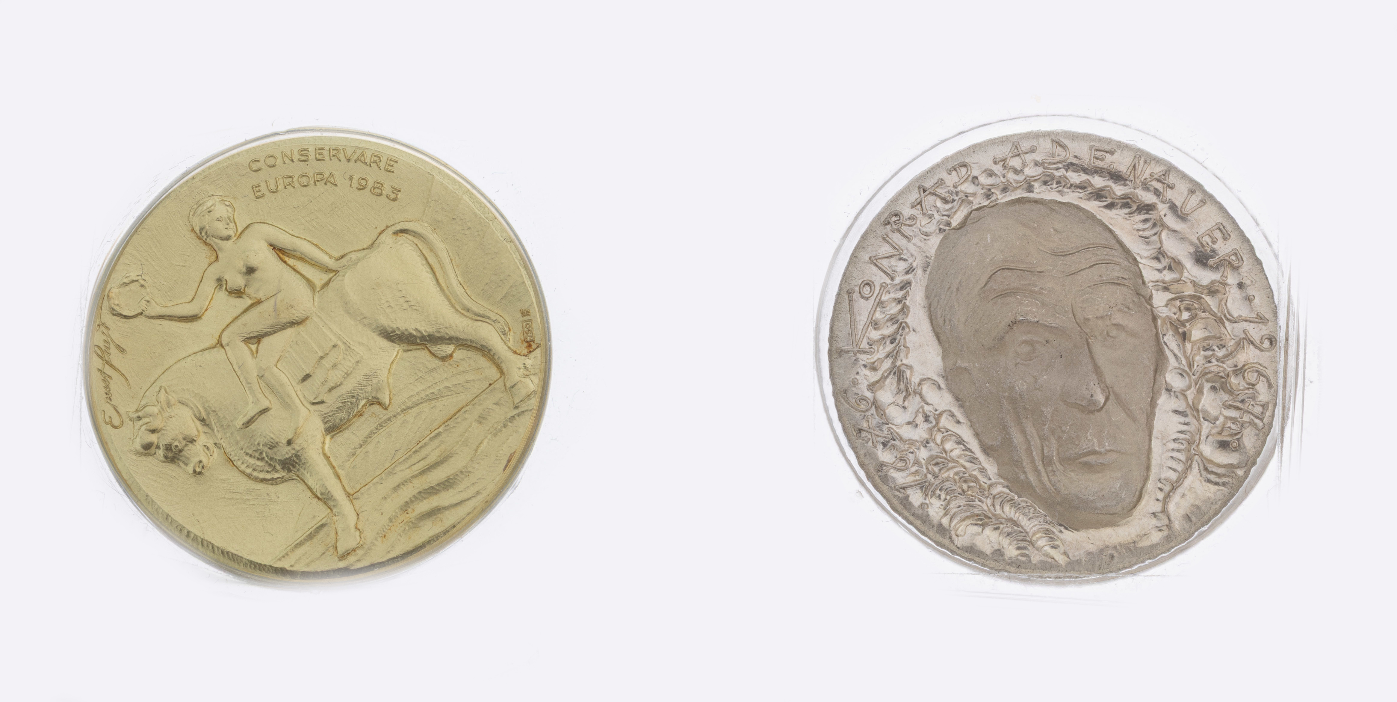 Konvolut 2 Medaillen, Konrad Adenauer, 1 x GG 750/000, AV: Portrait Adenauer, RV: