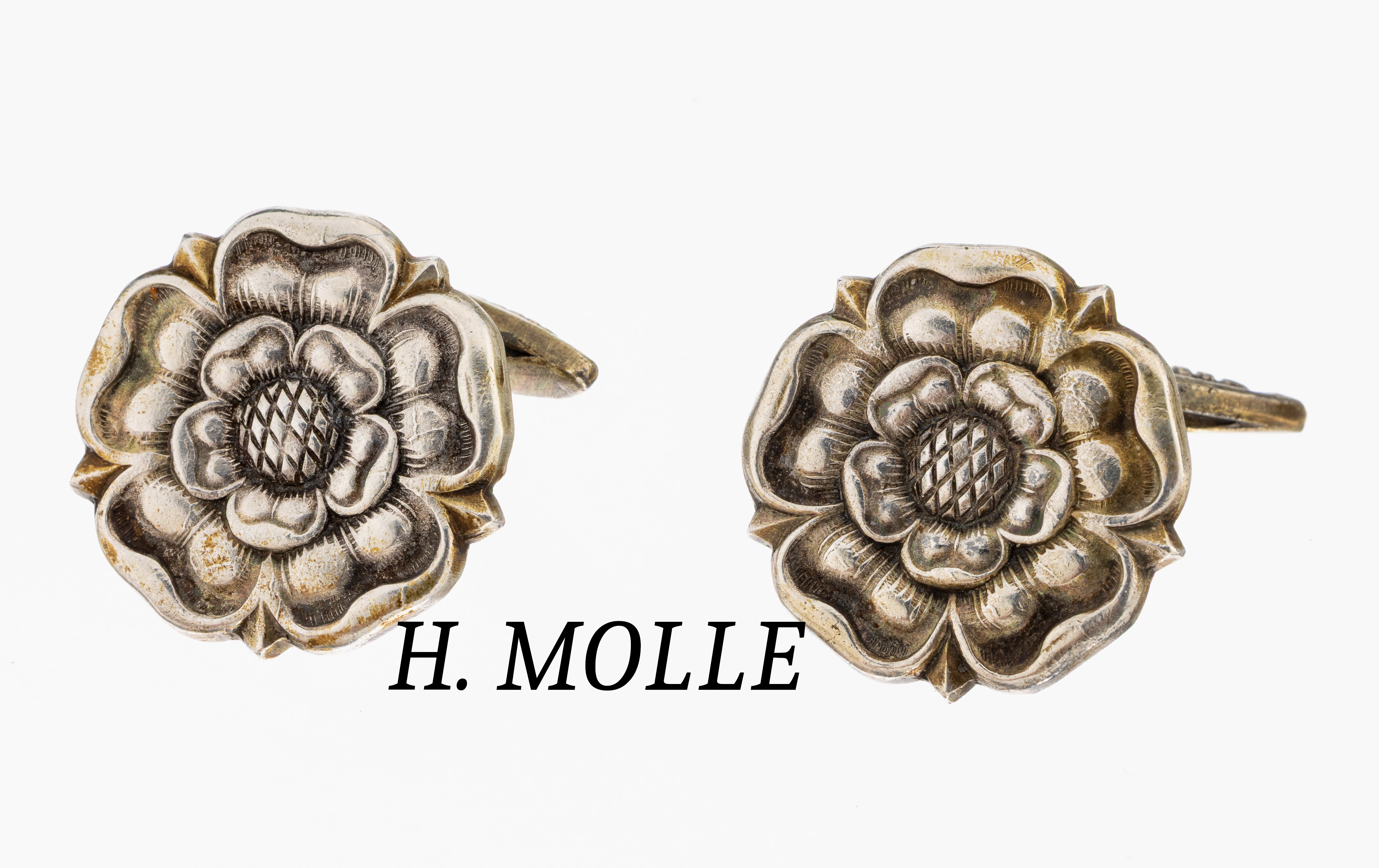 Paar Manschettenknöpfe, Dänemark, 1950er Jahre, 830er Silber, Darstellung der Tudor