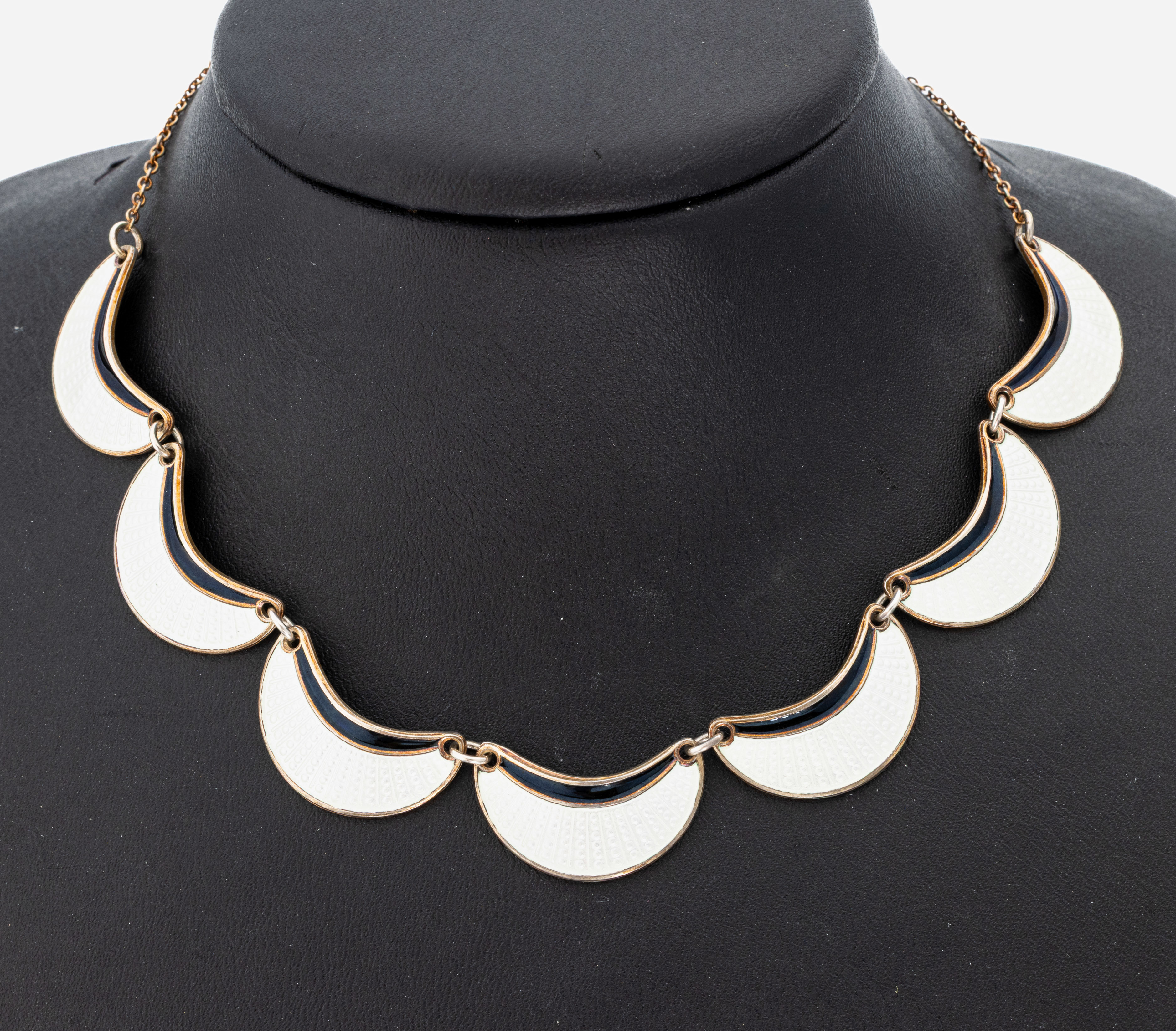 Email-Collier, Norwegen, 1950er-60er Jahre, 925er Silber verg., Mittelteil aus 7