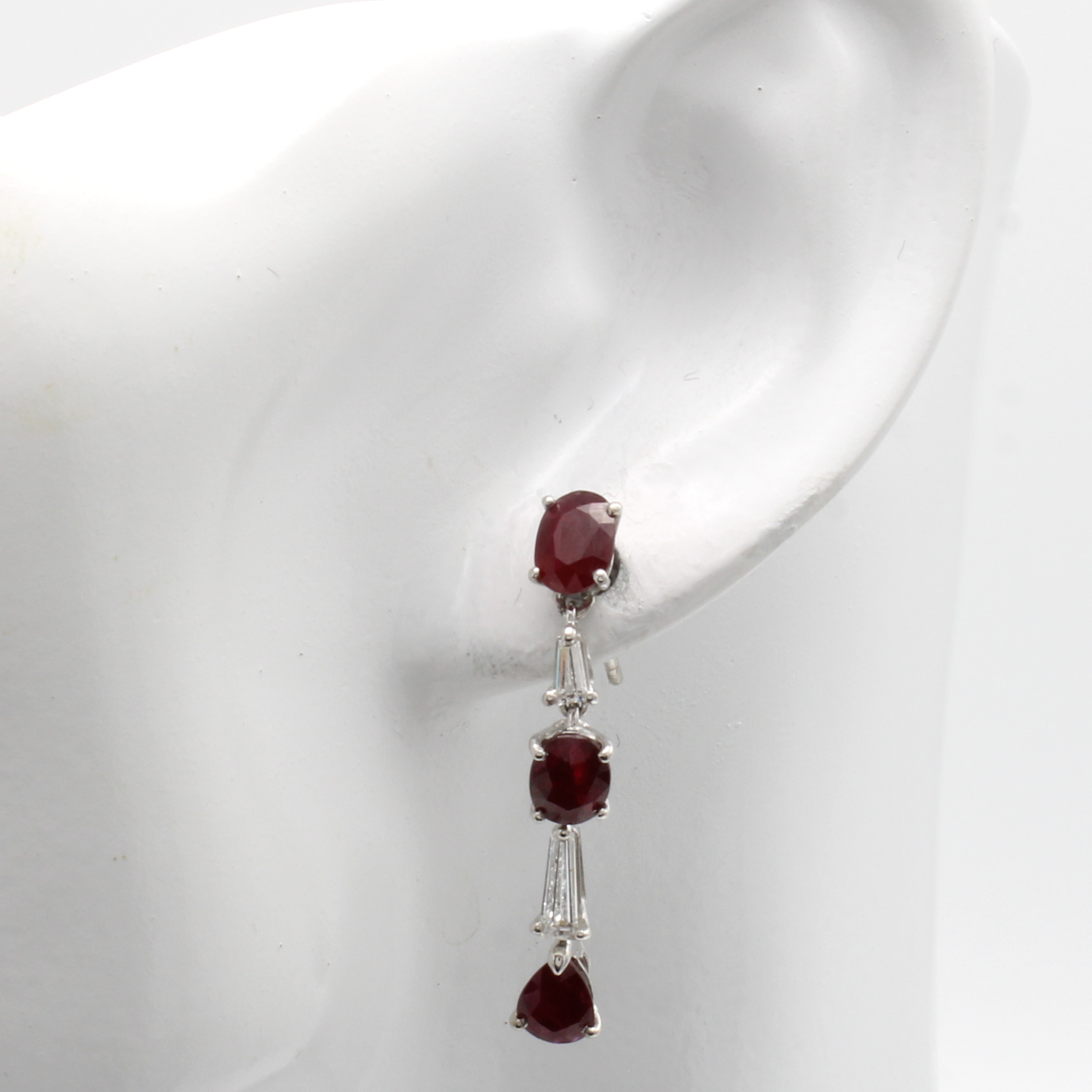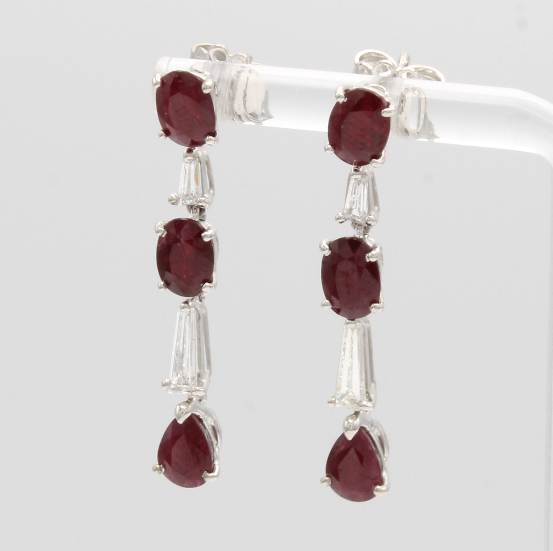 Paar Ohrstecker mit Rubinen und Diamanten, WG 585/000, tropfenförm. u. ovale Rubine (beh.) zus. ca. 6.23 ct, 4 Diamanttrapeze zus.ca. 0.84 ct Weiß/si Schätzpreis: 5880, - EUR