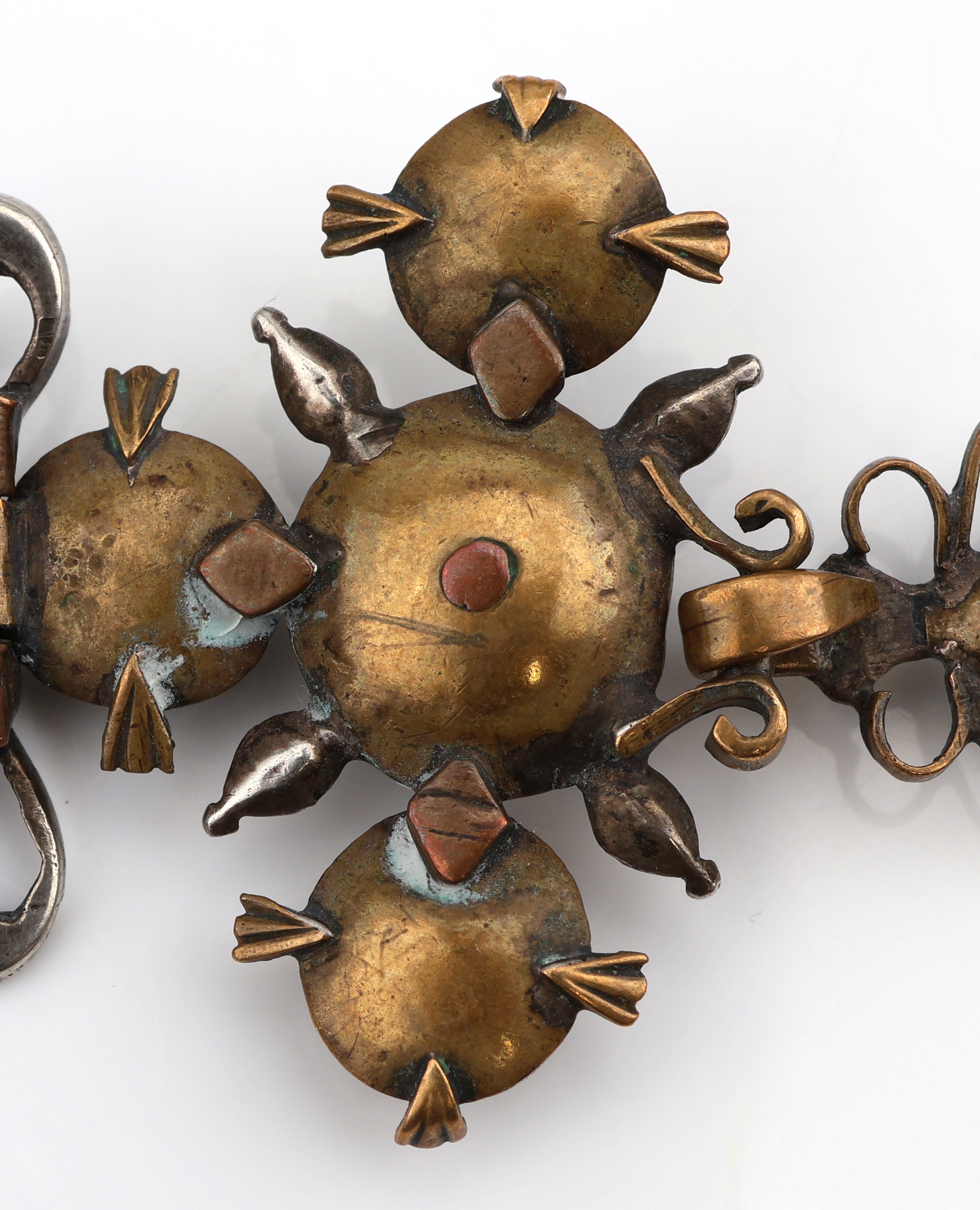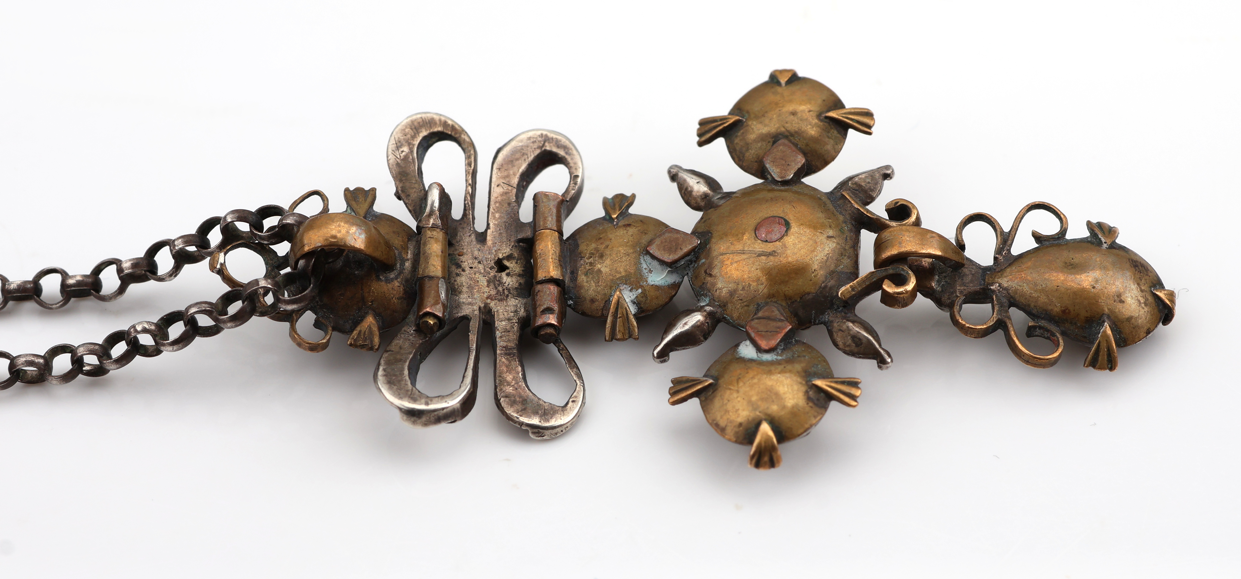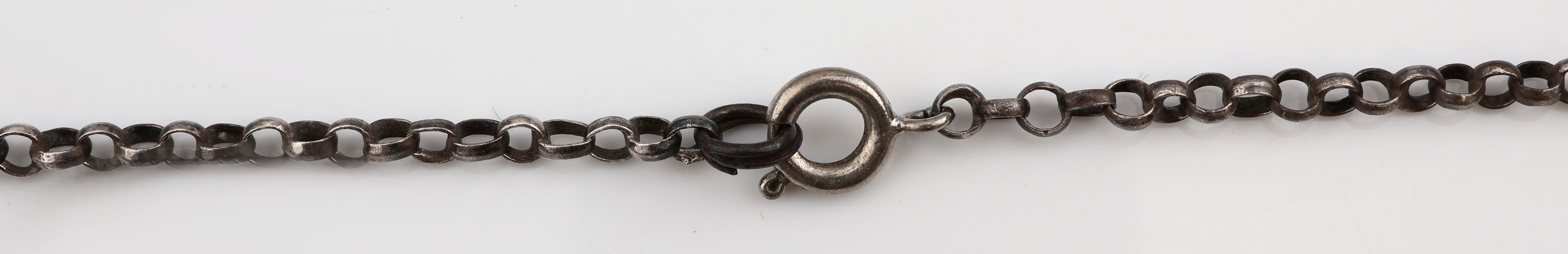 Anhänger, um 1780, Silber und Metall, Schleife mit Kreuz, kl. Markasiten (sek.), rs.verbödet, an Kette, Silber gepr., L. ca. 47.5 cm, Federringschließe
