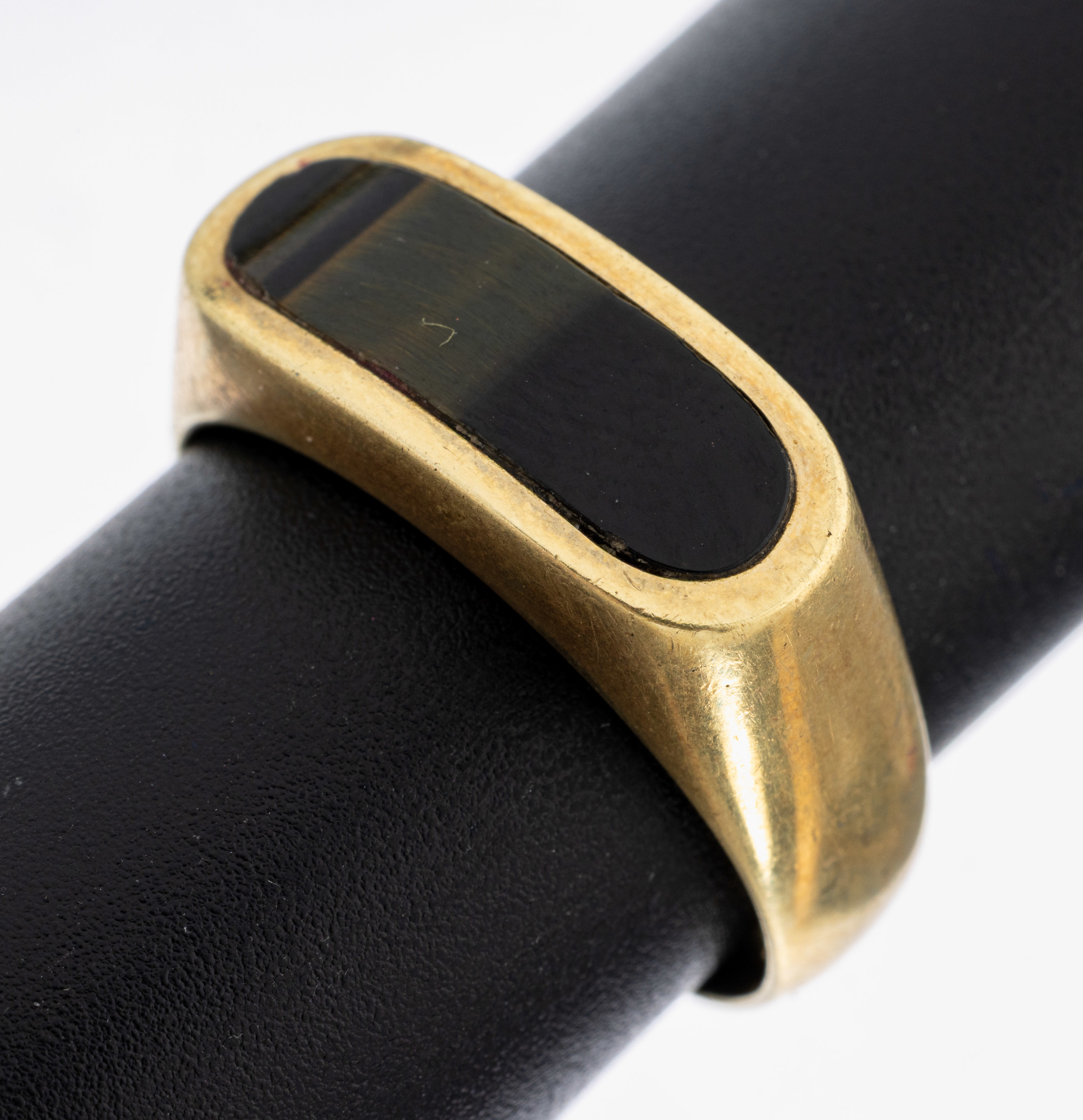 14 kt Gold Tigerauge-Ring, GG 585/000, schlichtes Design, Tigeraugen-Einlage, RW
